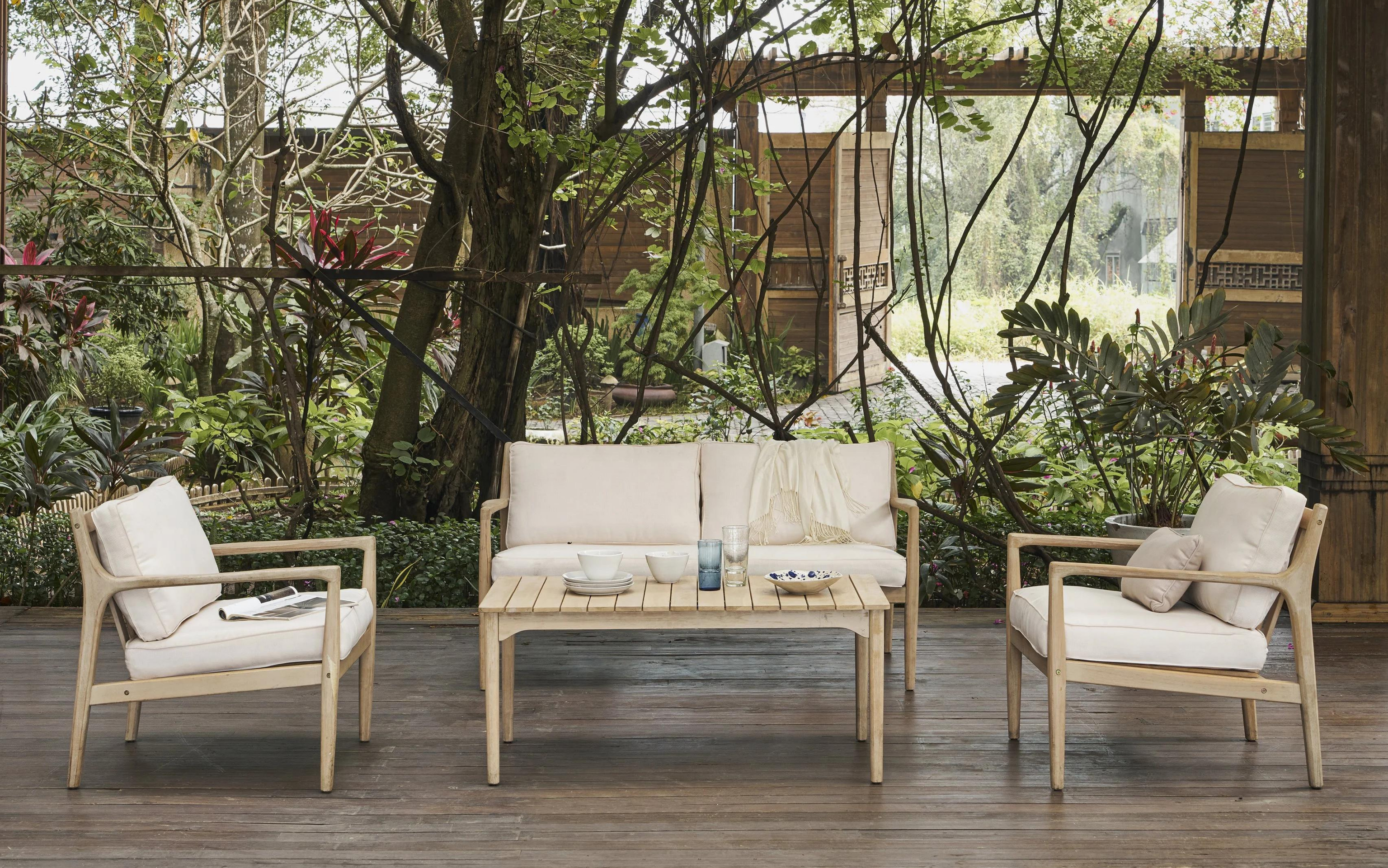 Een comfortabele loungeset mag natuurlijk niet ontbreken in de tuin. Maak jouw zithoek helemaal compleet met een vrolijk buitenkleed en gezellige sierkussens en geniet ook na de zomermaanden van jouw buitenruimte. Extra handig: deze lounge is gemaakt van Acacia hout en kan hierdoor het hele jaar door buiten blijven staan. Ideaal!