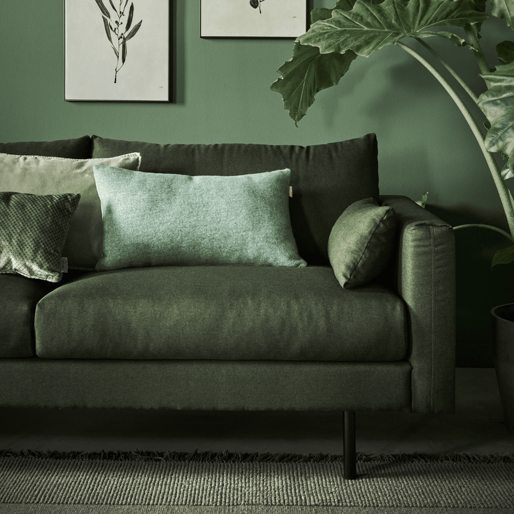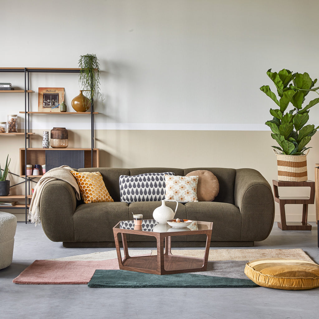 Groen: een tijdloze kleur voor een bank en helemaal on trend. Omdat een groene bank van bijvoorbeeld fluweel al eeneyecatcherop zich is, kun je voor een vloerkleed het beste voor neutrale tinten kiezen. (Gebroken) wit gecombineerd met zwart, grijs of donkergroen doen het gegarandeerd goed. Qua dessin kun je allerlei kanten op, maar zeker een vintage look laat jouw bank mooi uitkomen. Spelen met styling? Voeg een accentkleur, zoals bijvoorbeeld okergeel toe aan je woonkamer voor wat extra warmte.