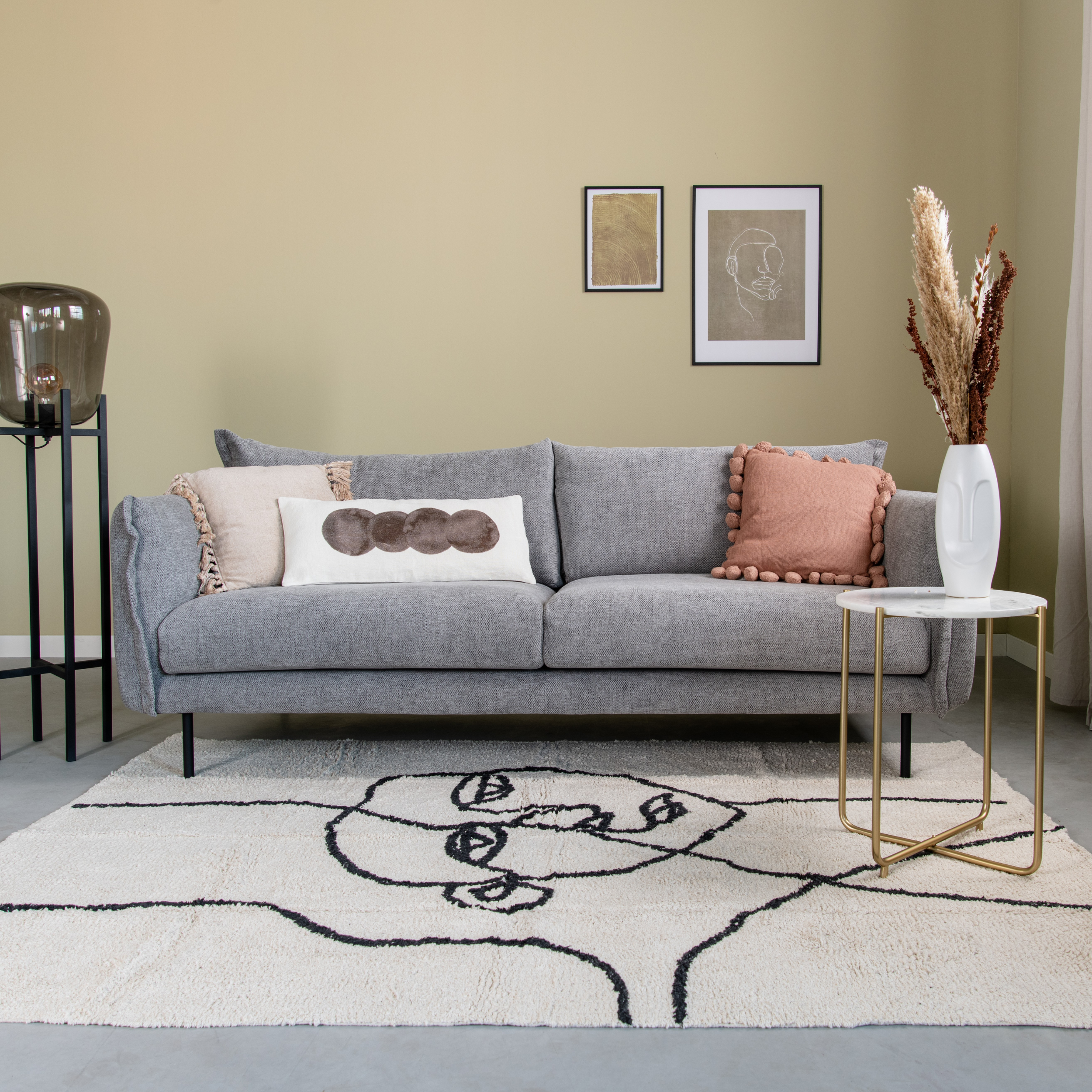 3. Welke kleur vloerkleed bij een grijze bank?