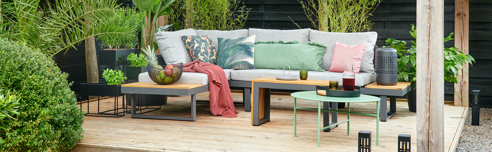 Natuurlijke kleuren en materialen zijn dé trend dit seizoen. Vooral items met een bamboe look zien we veel terug, zowel in het interieur als in de tuin. Van rotan tuinstoelen tot complete loungesets van bamboe. Niet alleen zijn deze materialen duurzaam, ze zorgen ook voor een heerlijke rustgevende en tikkeltje exotische sfeer. Perfect om dat vakantiegevoel naar je buitenruimte te halen!