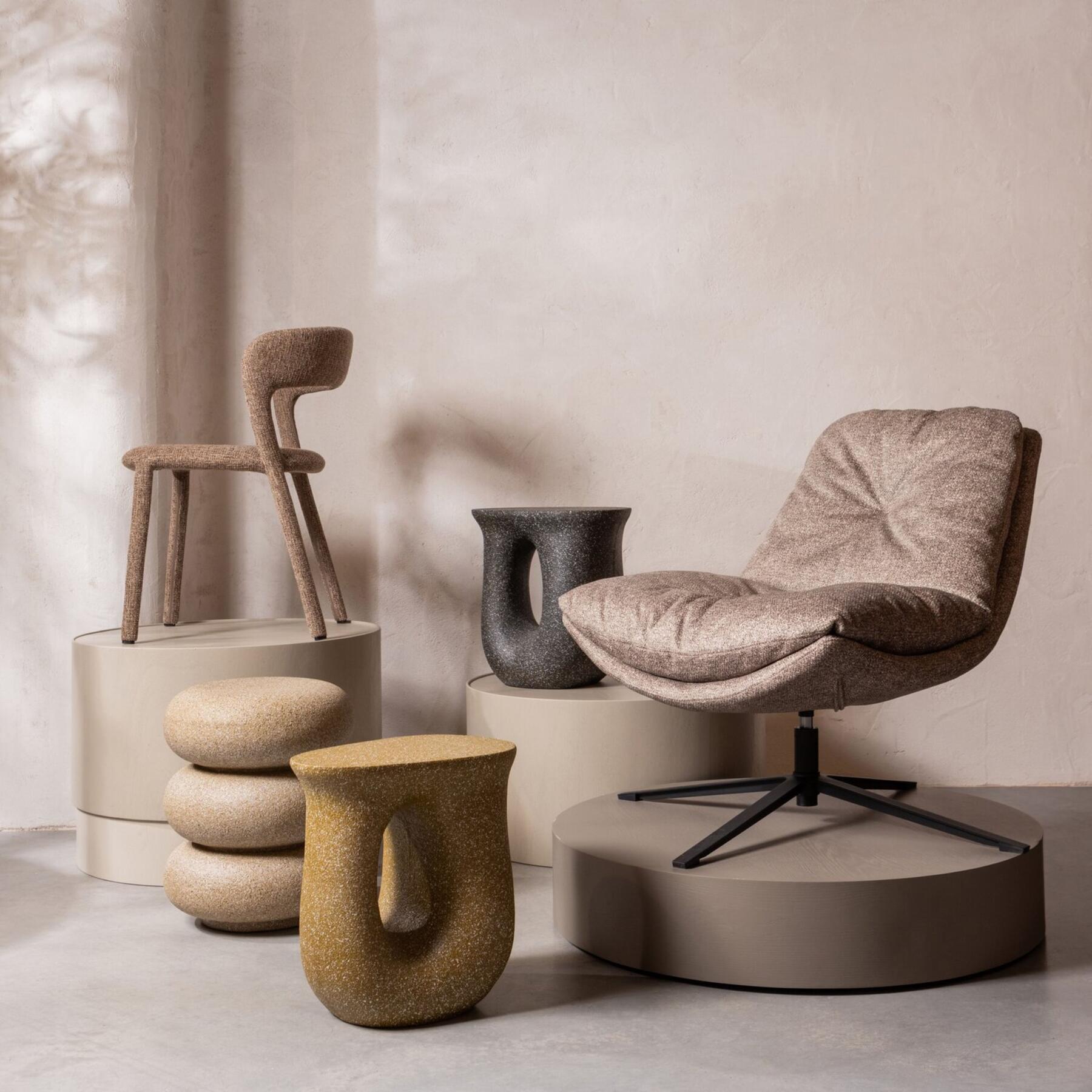 Materialen die mogen net zoveel opvallen als kleuren. Denk aan karaktervol hout met duidelijke nerven, of een bank in diepe ribstof. Zachte stoffen zoals bouclé en wolmix kunnen bijdragen aan een gevoel van comfort, terwijl details in metaal of glas het geheel iets stoerders geven. De mix van texturen maakt de collectie eigen en herkenbaar: warm, modern en naturel.