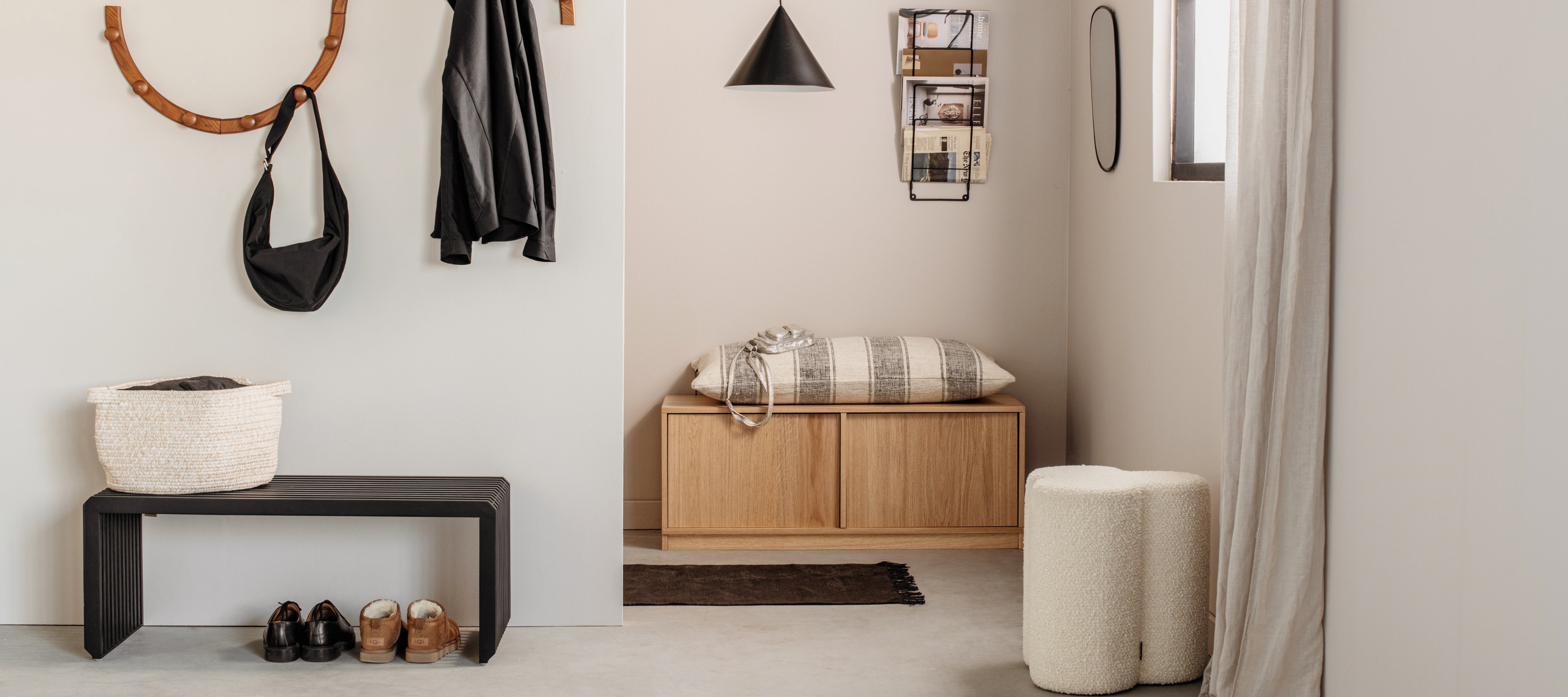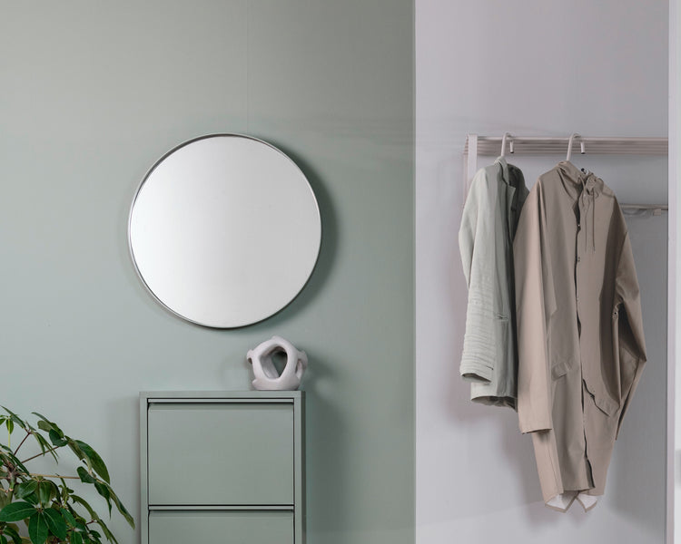 Over spiegels gesproken, een ronde spiegel in de hal (of waar dan ook) is dé trend van dit moment! Het liefst zo groot mogelijk. Door de weerkaatsing van het licht oogt de hal meteen een stuk ruimtelijker en een spiegel is natuurlijk onmisbaar voor een ‘check, check, dubbel check’ voordat je de deur uitgaat.