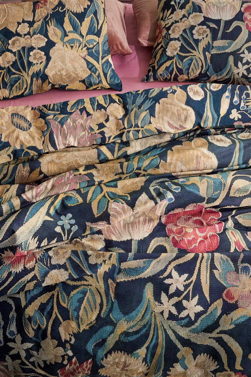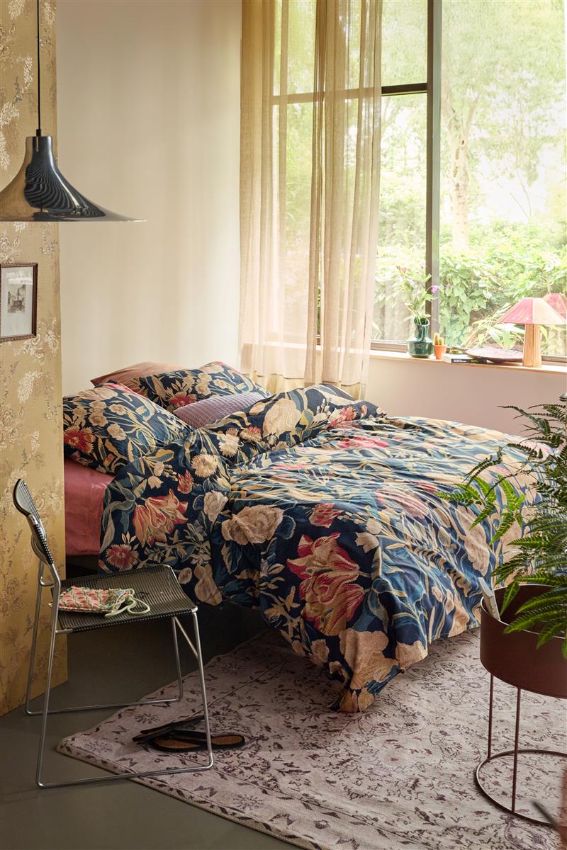 Een kunstwerk op je bed in plaats van op de muur, dat is dekbedovertrek Tradition uit de collectie van At Home by Bedding House. Het dekbedovertrek is bezaaid met gedetailleerde bloemen die extra mooi in het oog springen door de donkerblauwe ondergrond. Stijl het bed af met een fel hoeslaken en sierkussens voor net dat sprankje speelsheid. De achterkant van het overtrek heeft dezelfde print als de voorkant. Het dekbedovertrek is verpakt in een mooie stoffen tas gemaakt van dezelfde stof als het overtrek. De tas is niet alleen herbruikbaar, het biedt ook de mogelijkheid om de print van het overtrek te zien en te voelen. Het dekbedovertrek is gemaakt van 100% katoen en heeft over de gehele breedte aan beide zijden een dubbele instopstrook. De totale lengte van het dekbedovertrek is 240 cm. Dit is extra lang waardoor het dekbedovertrek gemakkelijk onder het matras gestopt kan worden en koude voeten worden voorkomen. Het overtrek is geschikt voor dekbedden van 200 cm, 210 cm of 220 cm.Door katoenproducten te kiezen van ons, steunt u onze investering in de missie van Better Cotton. Dit product is ingekocht via een mass balance systeem en bevat daardoor mogelijk geen Better Cotton. Zie bettercotton.org/learnmore. Geproduceerd door Bedding House, exclusief voor At Home by Bedding House.
