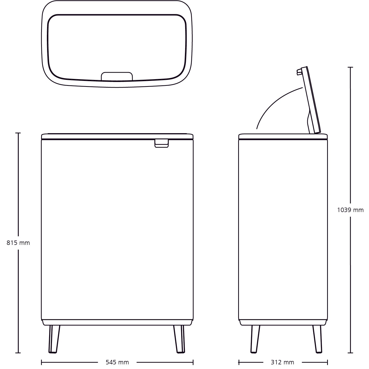 | Hoogte met geopend deksel | 103.9 cm |