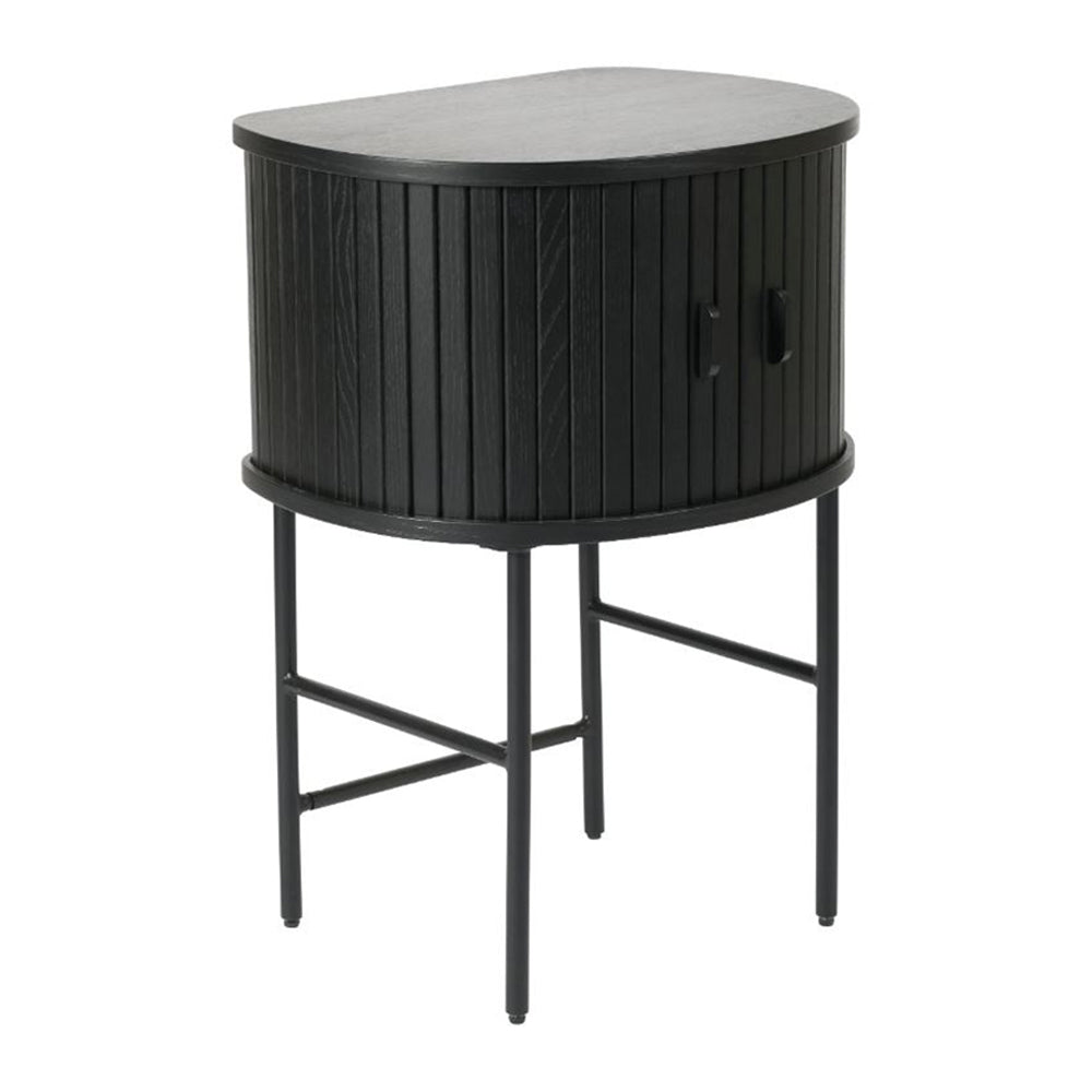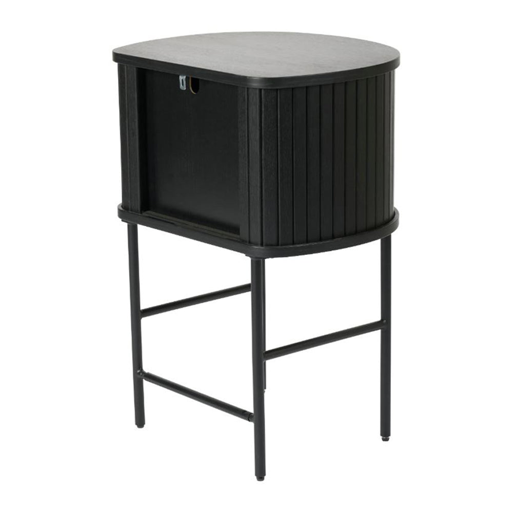 - Ondersteund door zwarte metalen poten