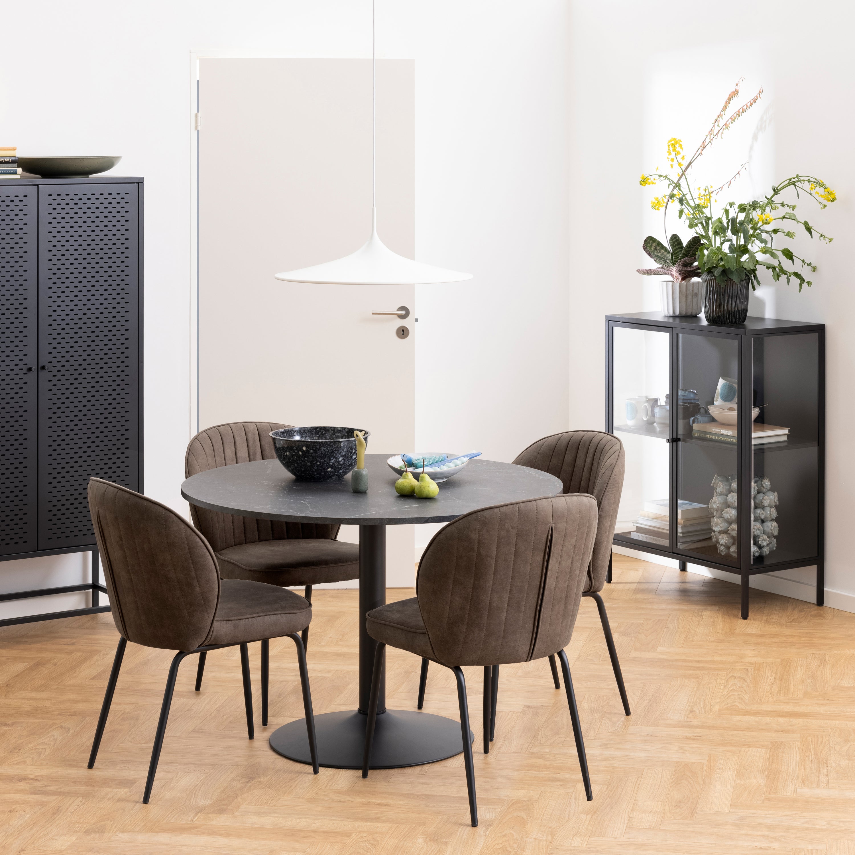 - Strakke eettafel van H 74 x Ø 110 cm