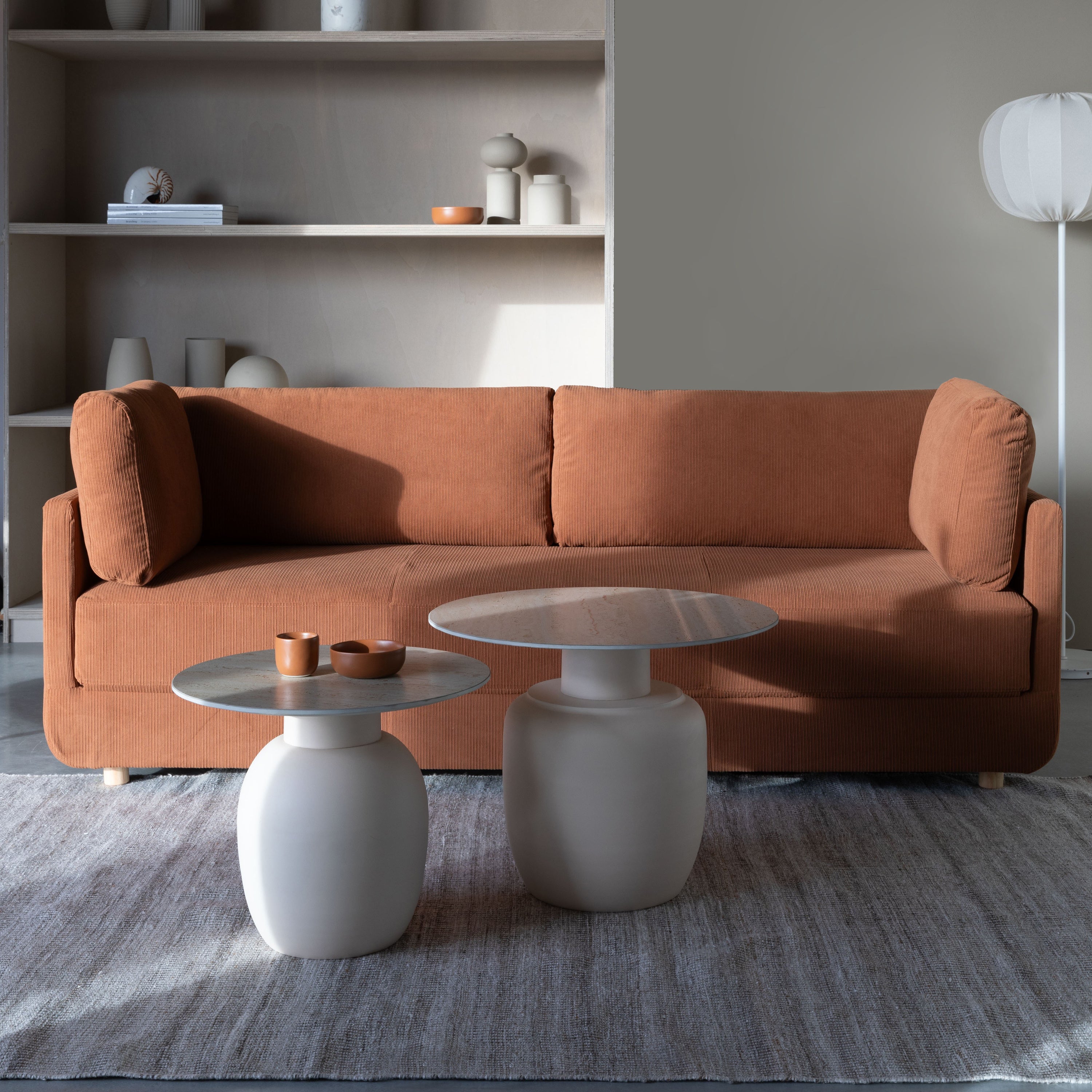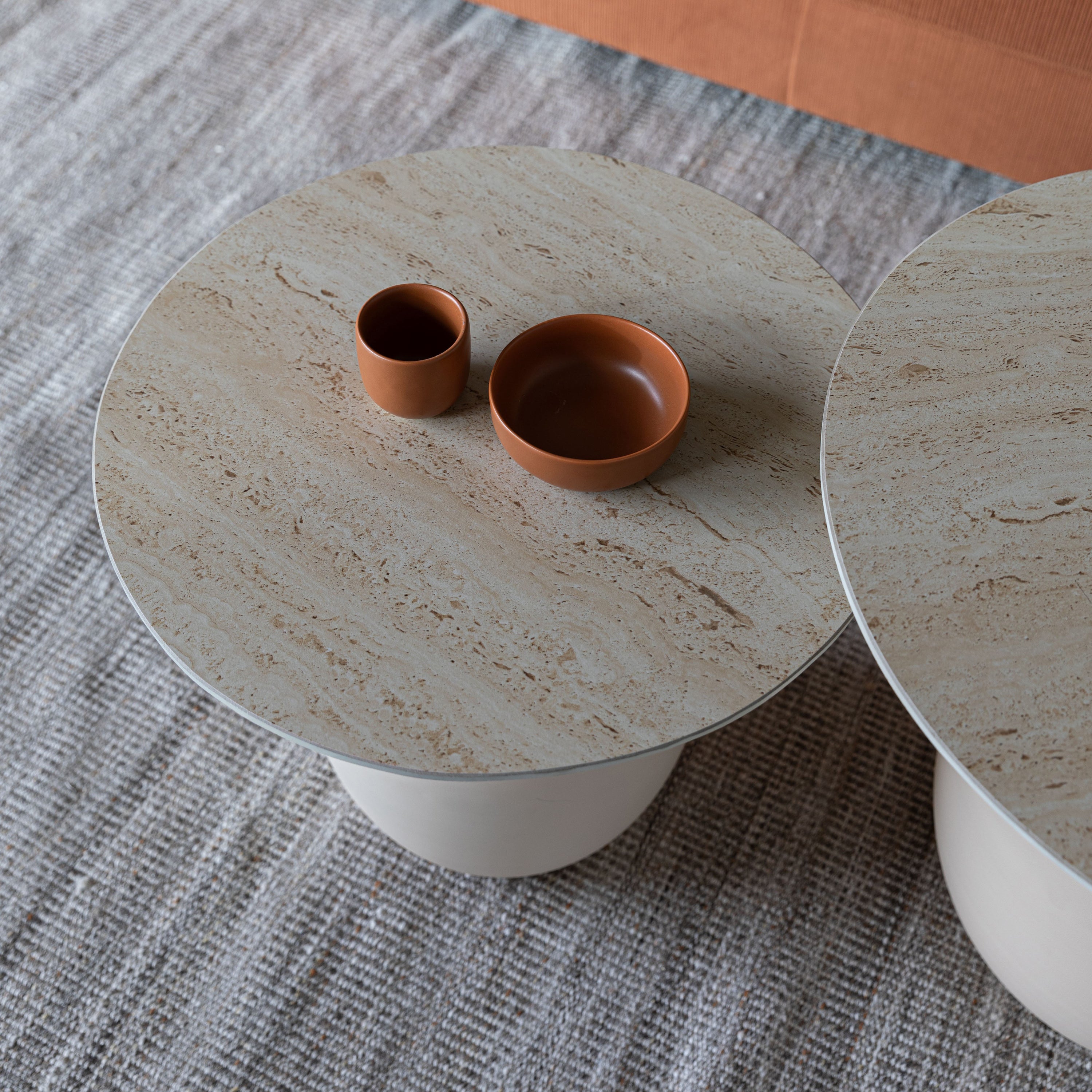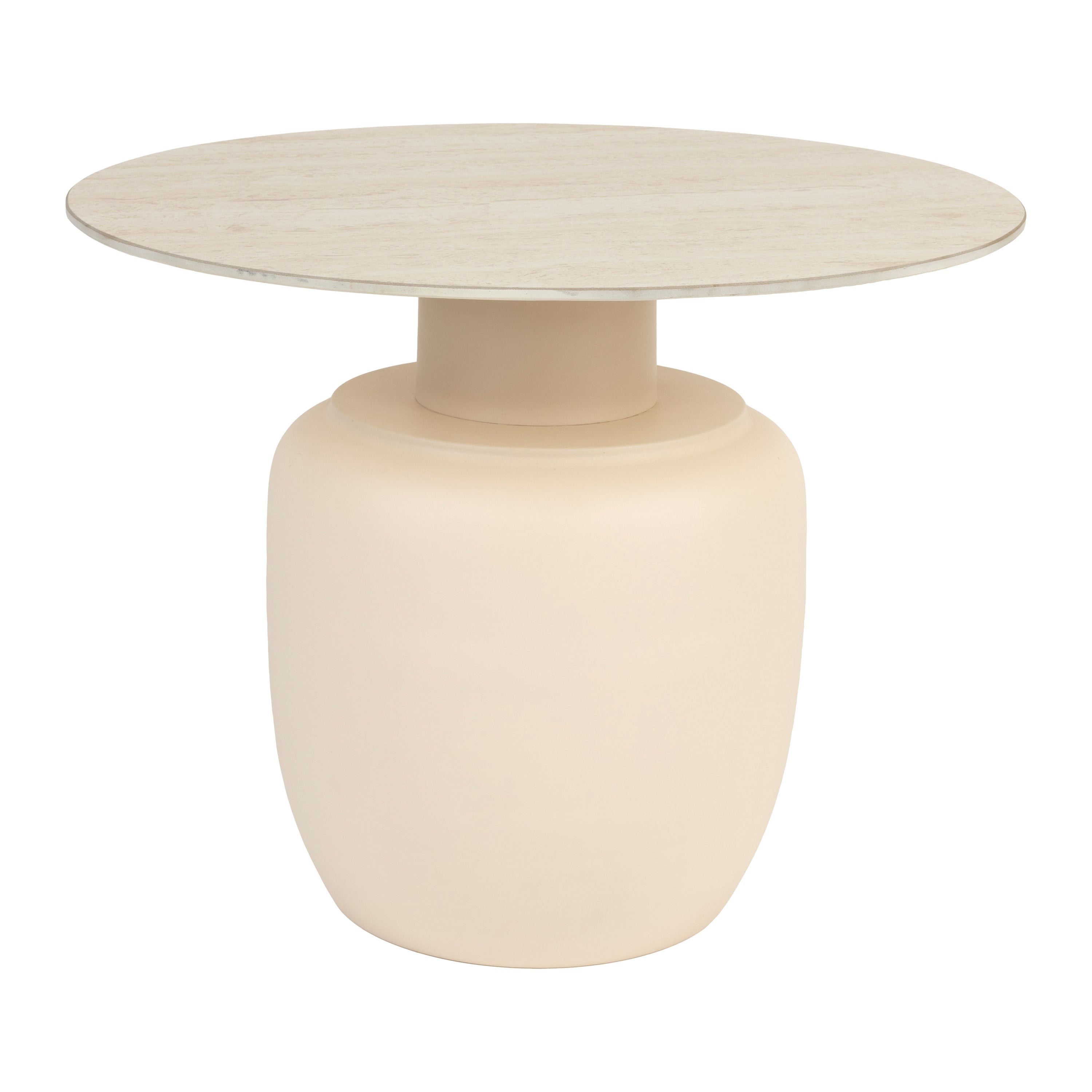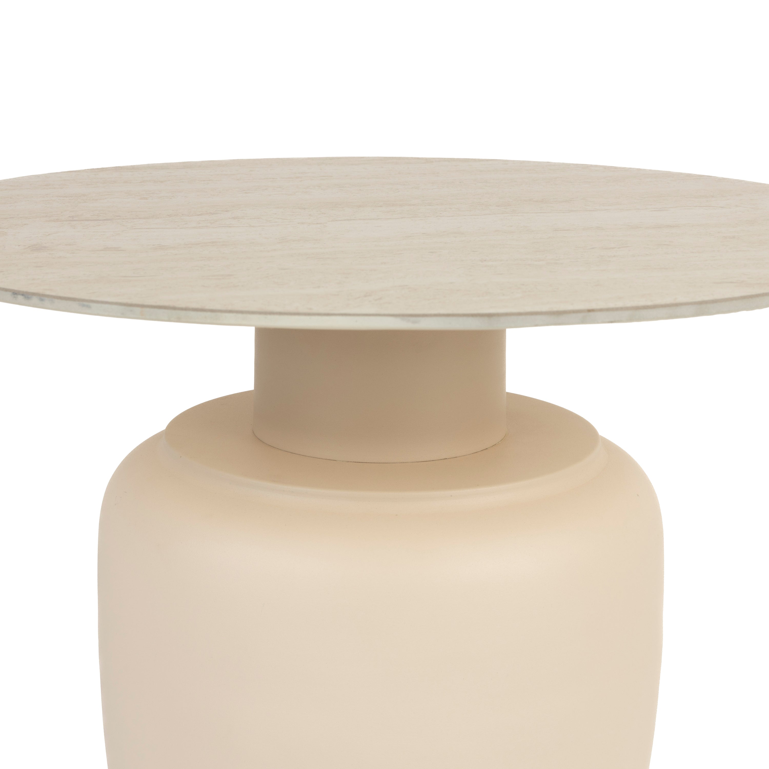 - Stevige poot van ijzer en travertin-look tafelblad van keramiek