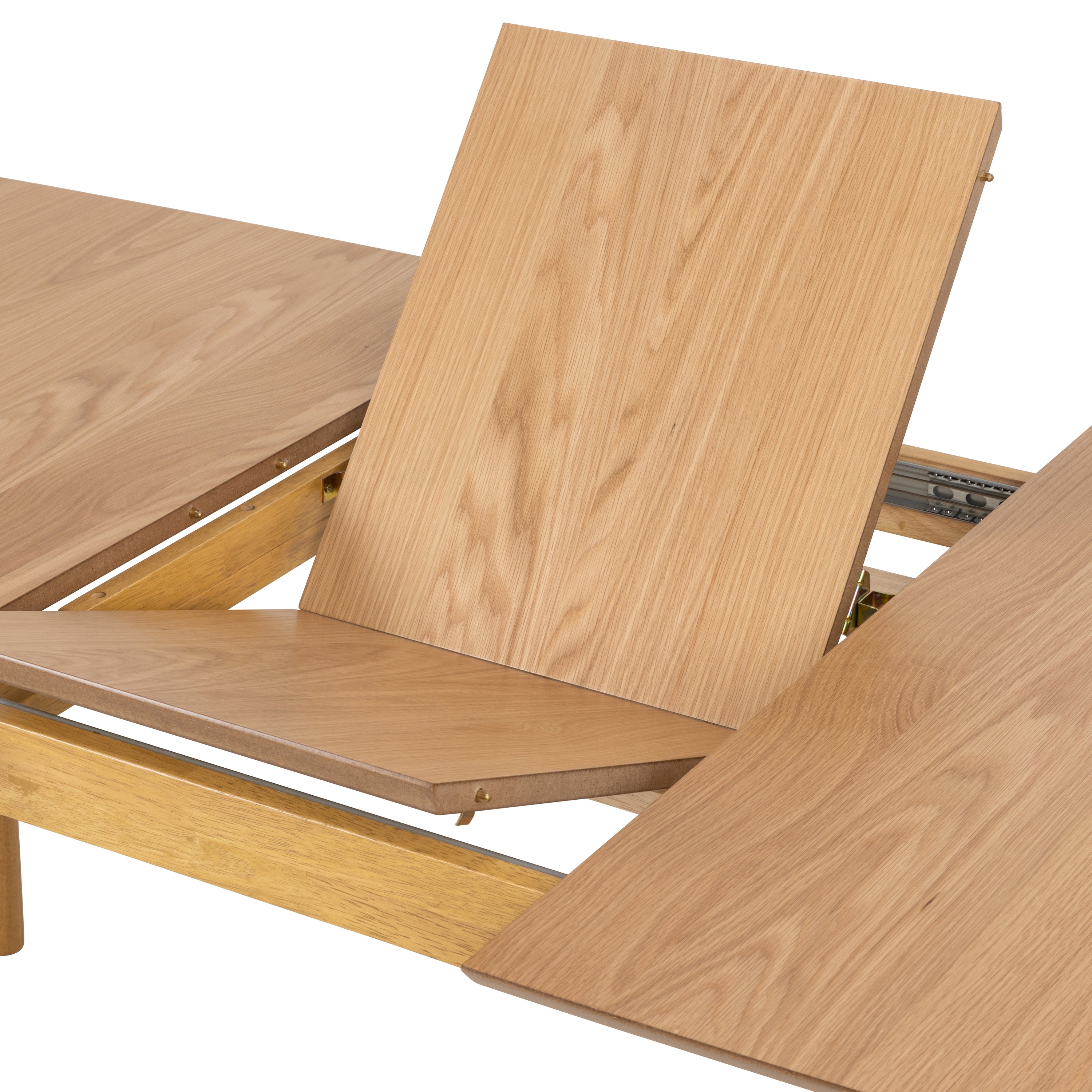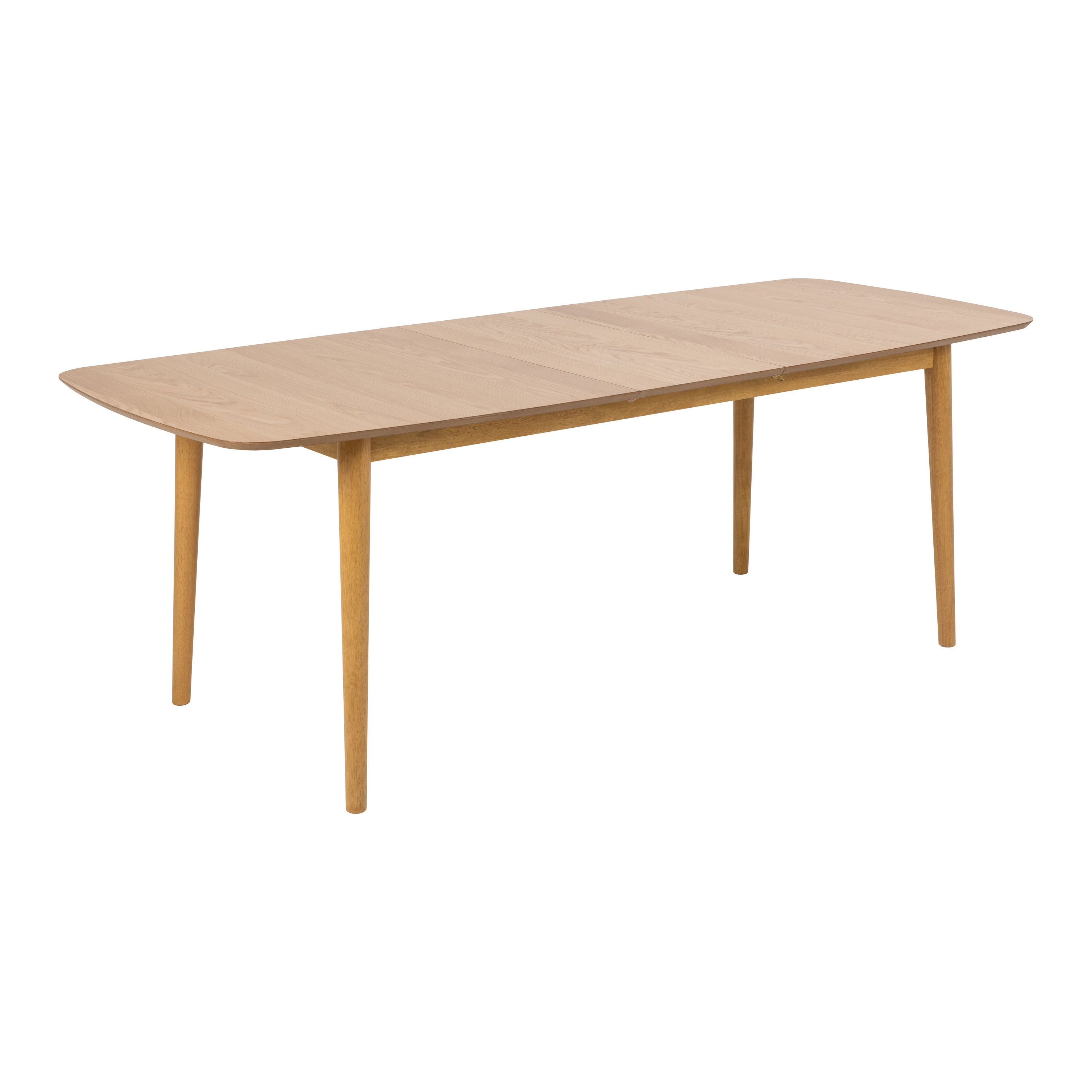 De tafel is eenvoudig uit te schuiven tot een breedte van 220 centimeter. Zo kun je altijd genoeg stoelen kwijt aan de eetkamertafel. Handig: het verlengdeel van het tafelblad klapt weg onder de tafel, waardoor je deze niet afzonderlijk hoeft op te bergen. Breedte: 180 - 220 cm