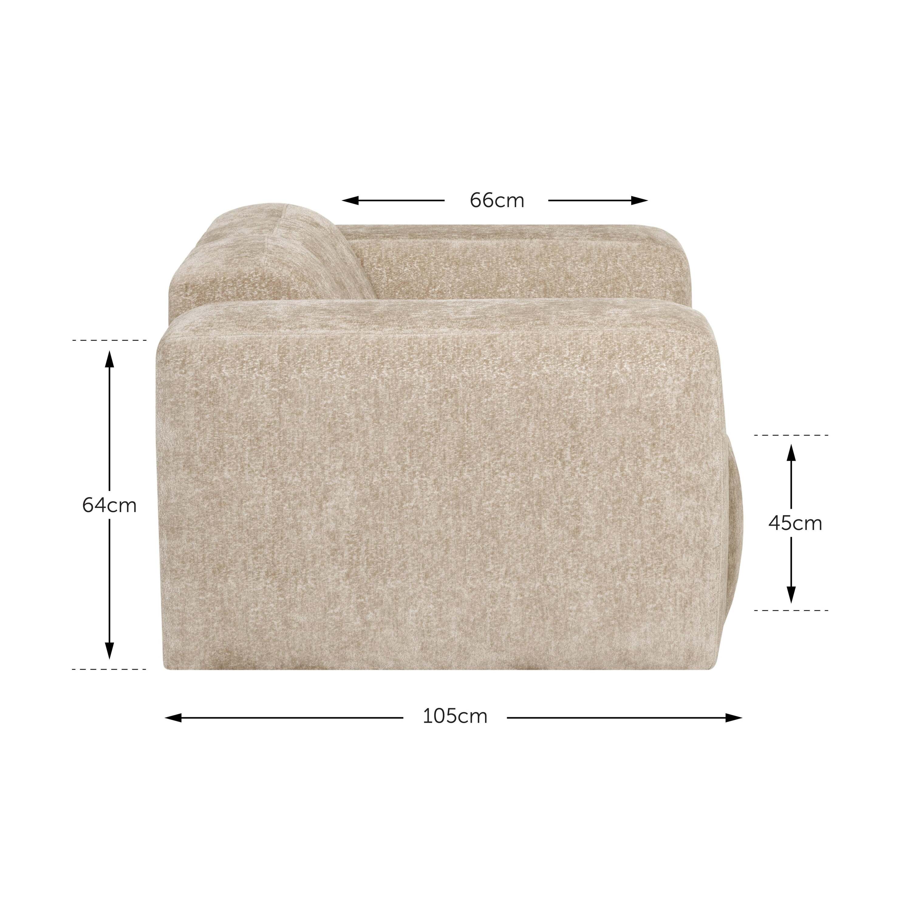 - Zachte rug, diepe zit en chunky armleuningen van 64 cm hoog