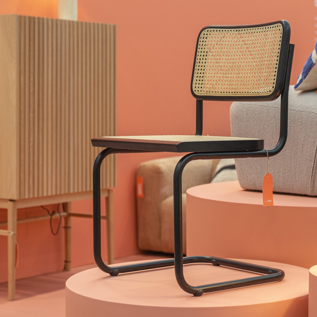 - Met een gevlochten zitting van bamboe, hip!