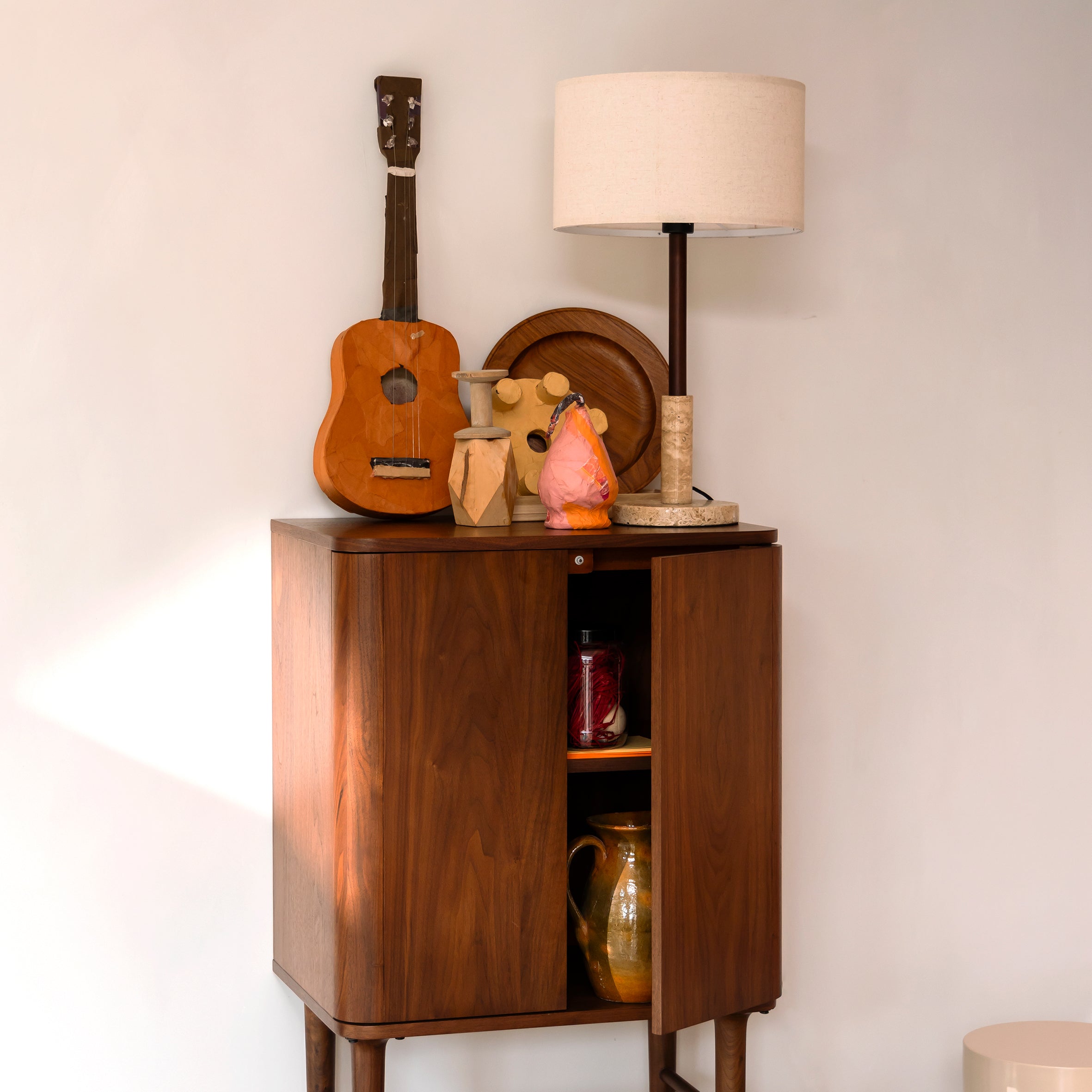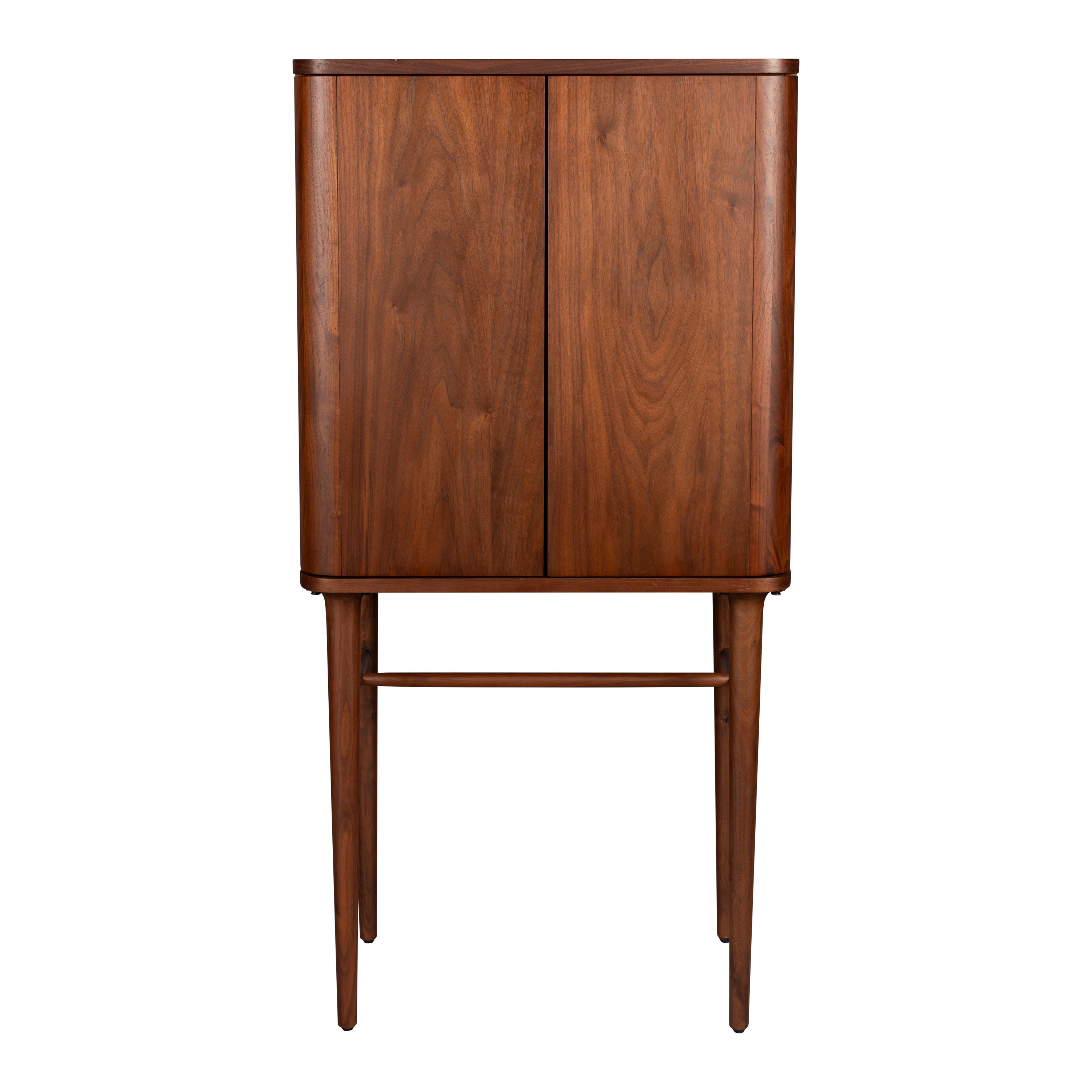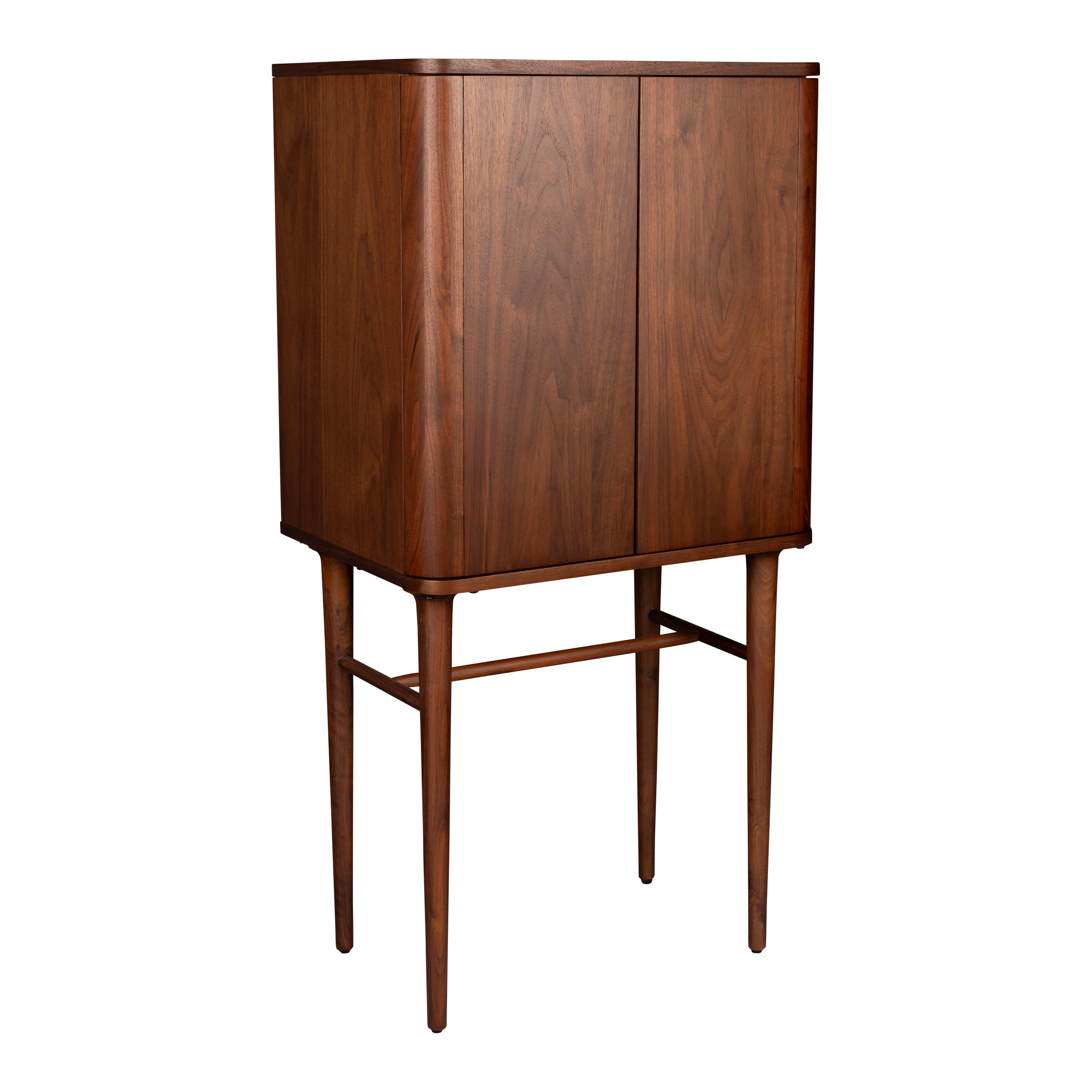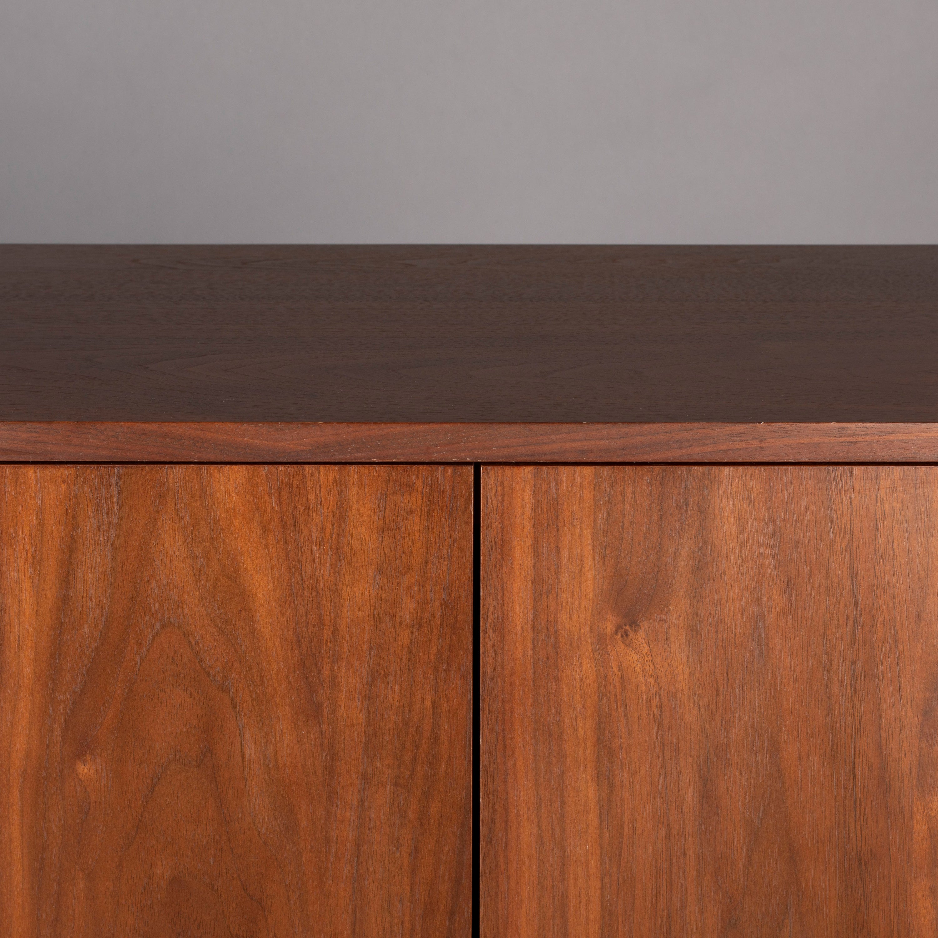 - De kast is gemaakt van walnootfineer en staat op massief walnoothouten poten