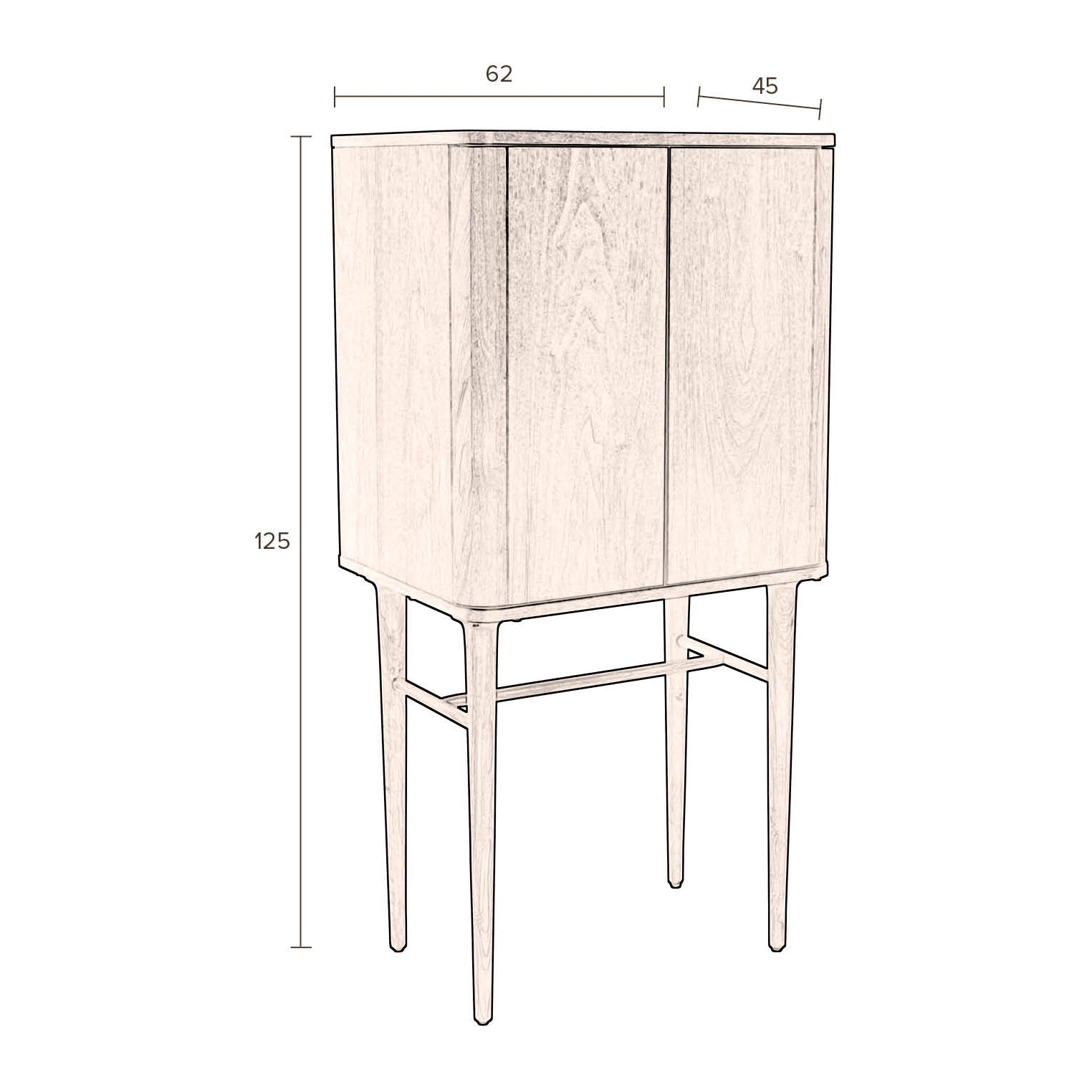 - Opbergkast van H 125 x B 45 x D 62 cm