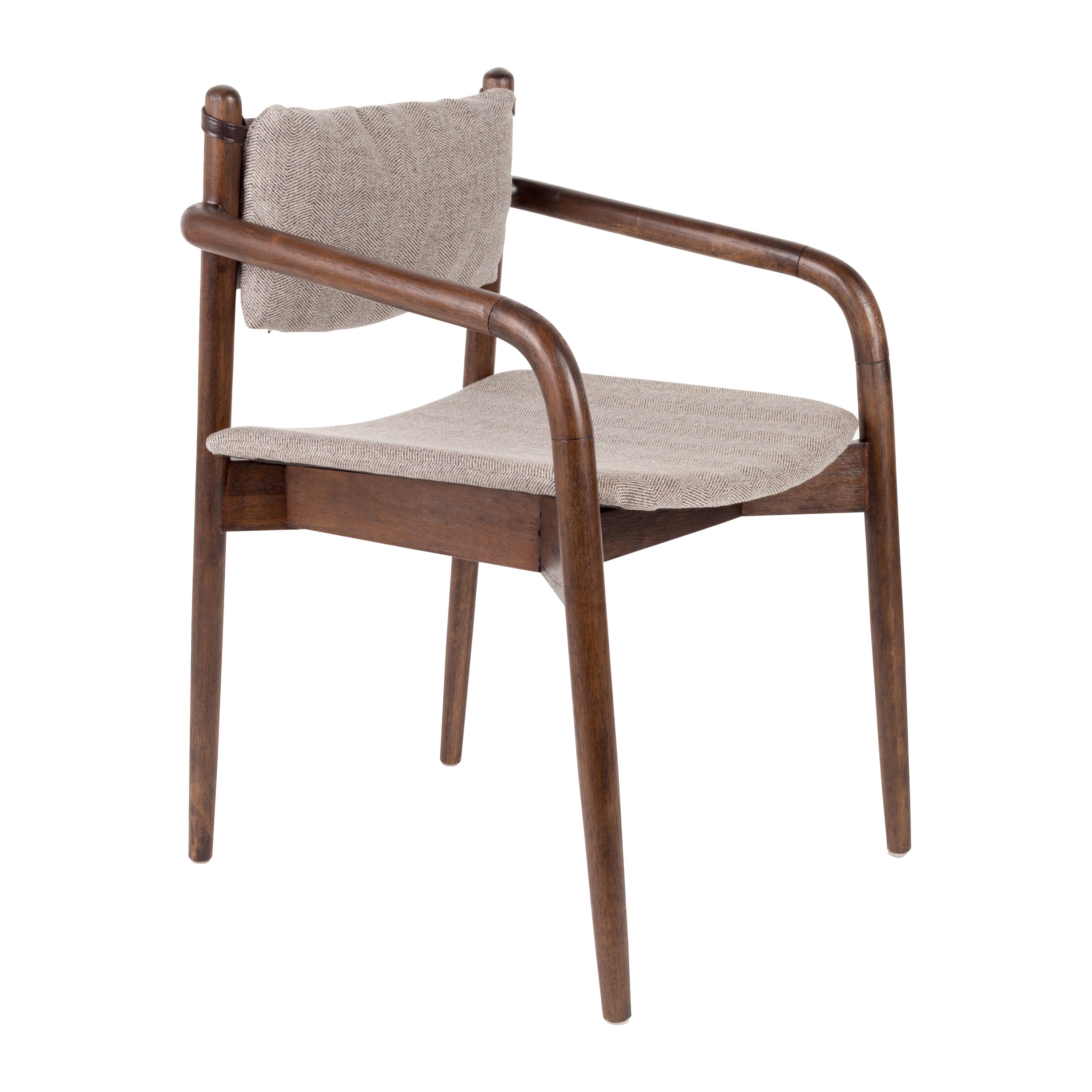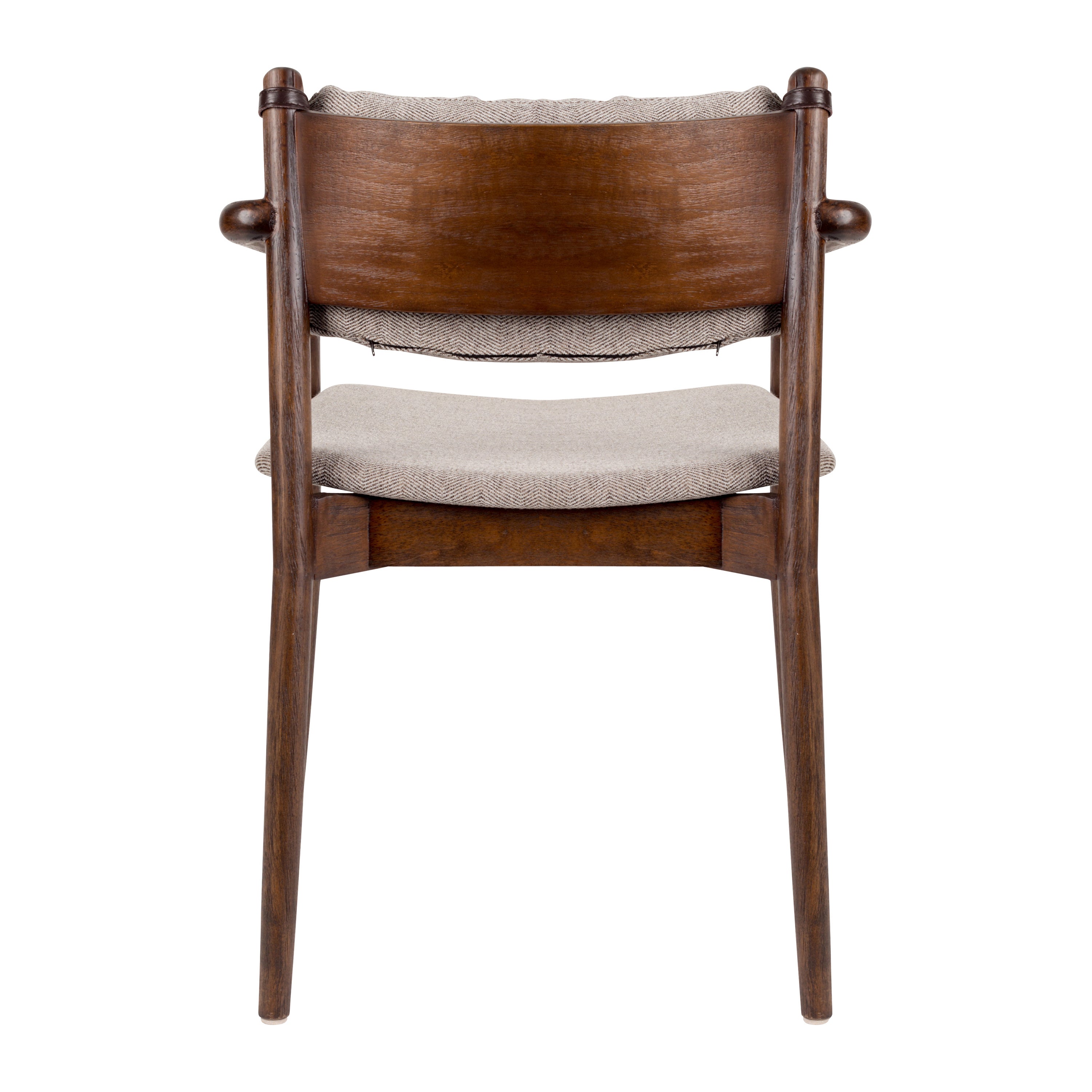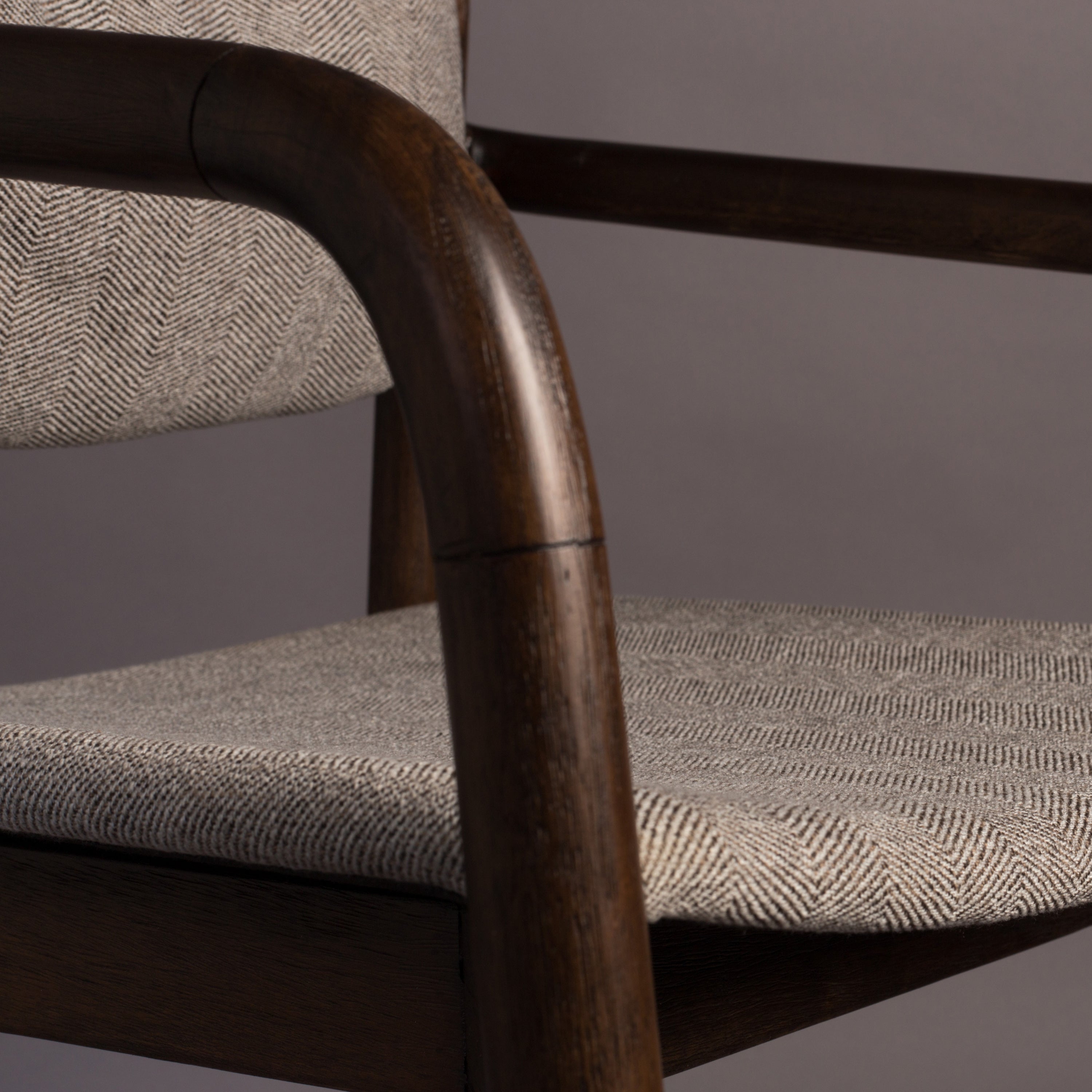 Retro modern design Het mooie donkere frame is gemaakt van gelakt rubberhout. De laklaag zorgt ervoor dat het hout lang mooi blijft. De zitting is gemaakt van polyestertextiel met het herkenbare herringbone patroon. De stoel zit lekker zacht dankzij de vulling van polyesterfoam. Het rugkussen heeft ook een textielen hoes, is gevuld met polyestervezels én is ook nog eens afneembaar. Zo kun je zelf kiezen voor welke look je gaat!