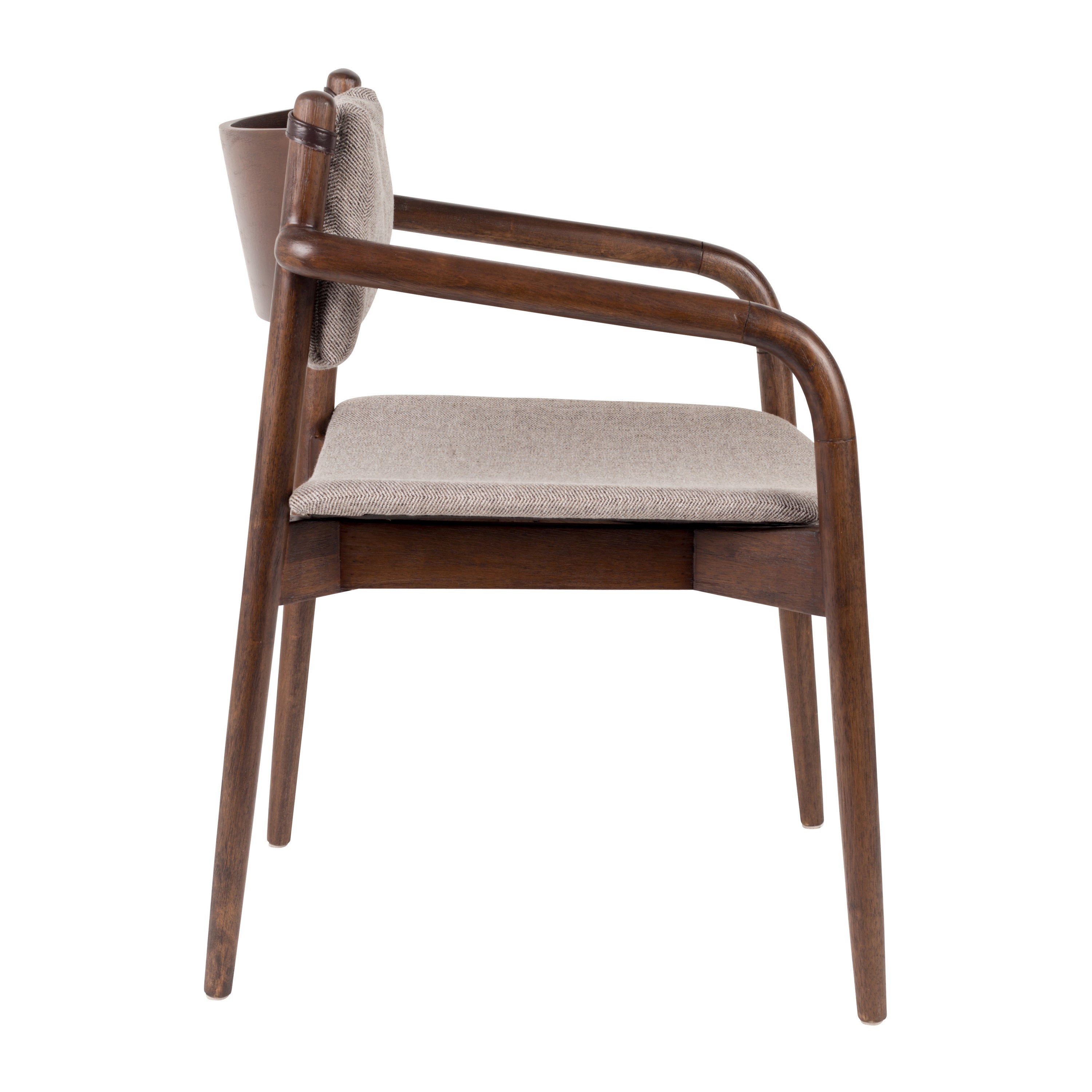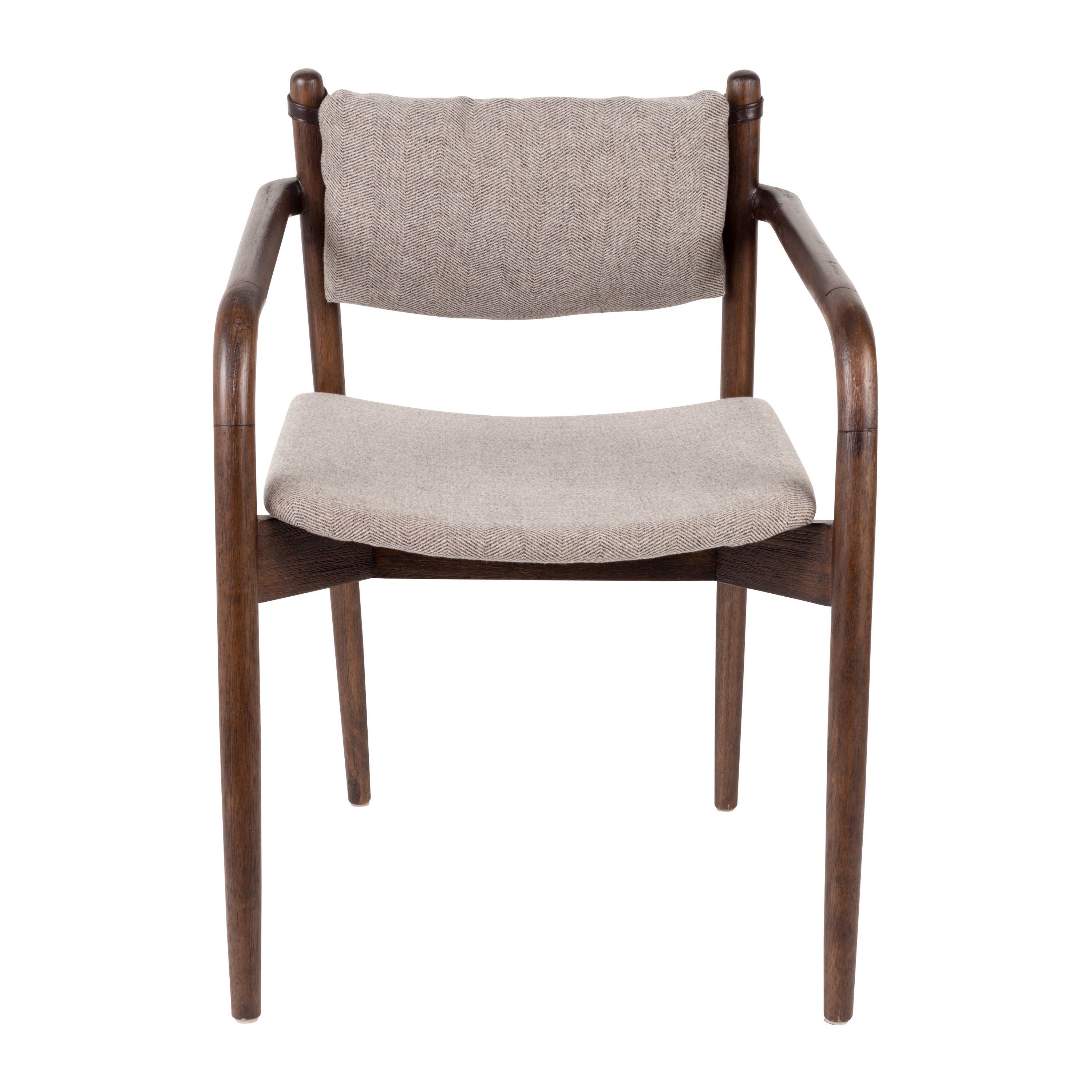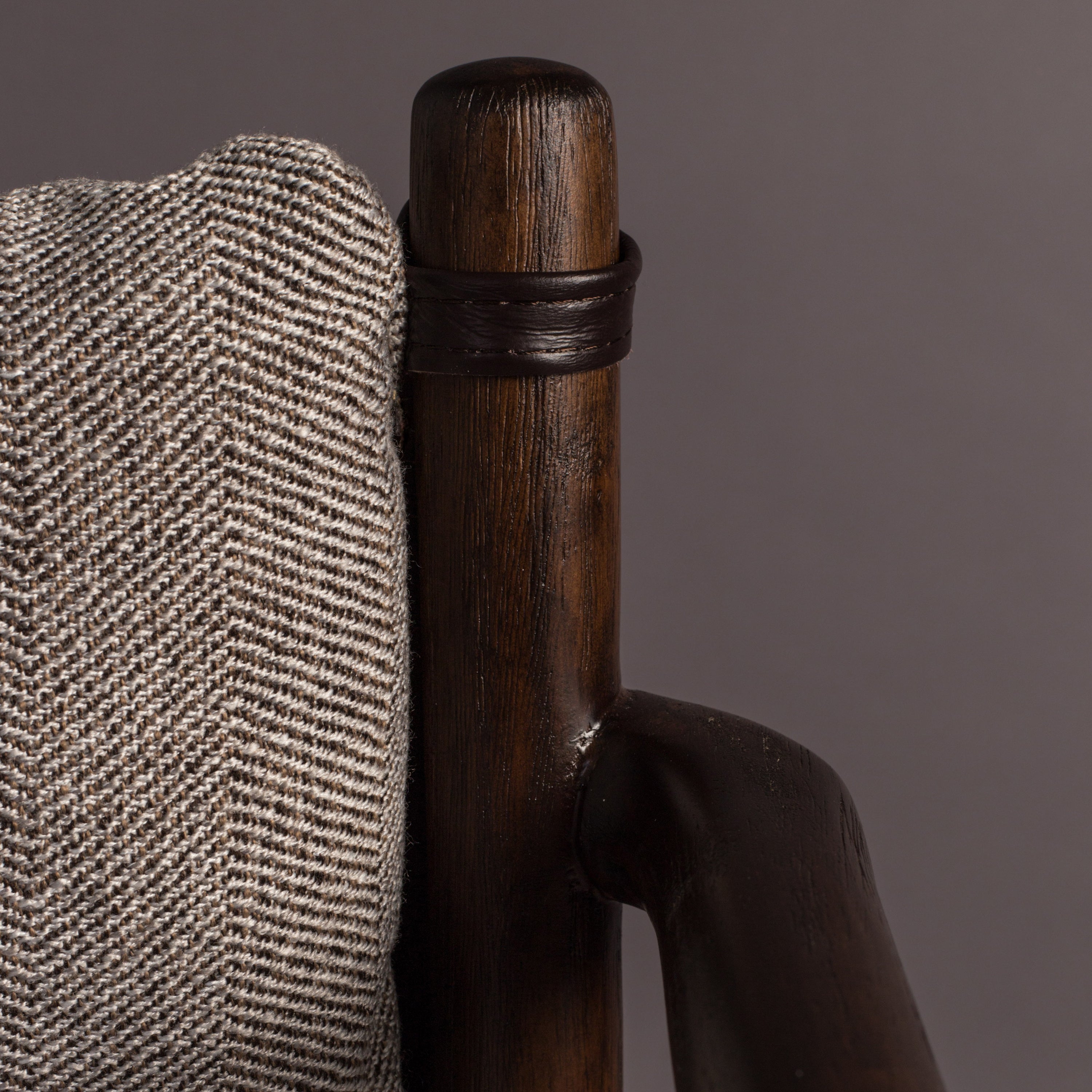 Retro modern design Het mooie donkere frame is gemaakt van gelakt rubberhout. De laklaag zorgt ervoor dat het hout lang mooi blijft. De zitting is gemaakt van polyestertextiel met het herkenbare herringbone patroon. De stoel zit lekker zacht dankzij de vulling van polyesterfoam. Het rugkussen heeft ook een textielen hoes, is gevuld met polyestervezels én is ook nog eens afneembaar. Zo kun je zelf kiezen voor welke look je gaat!