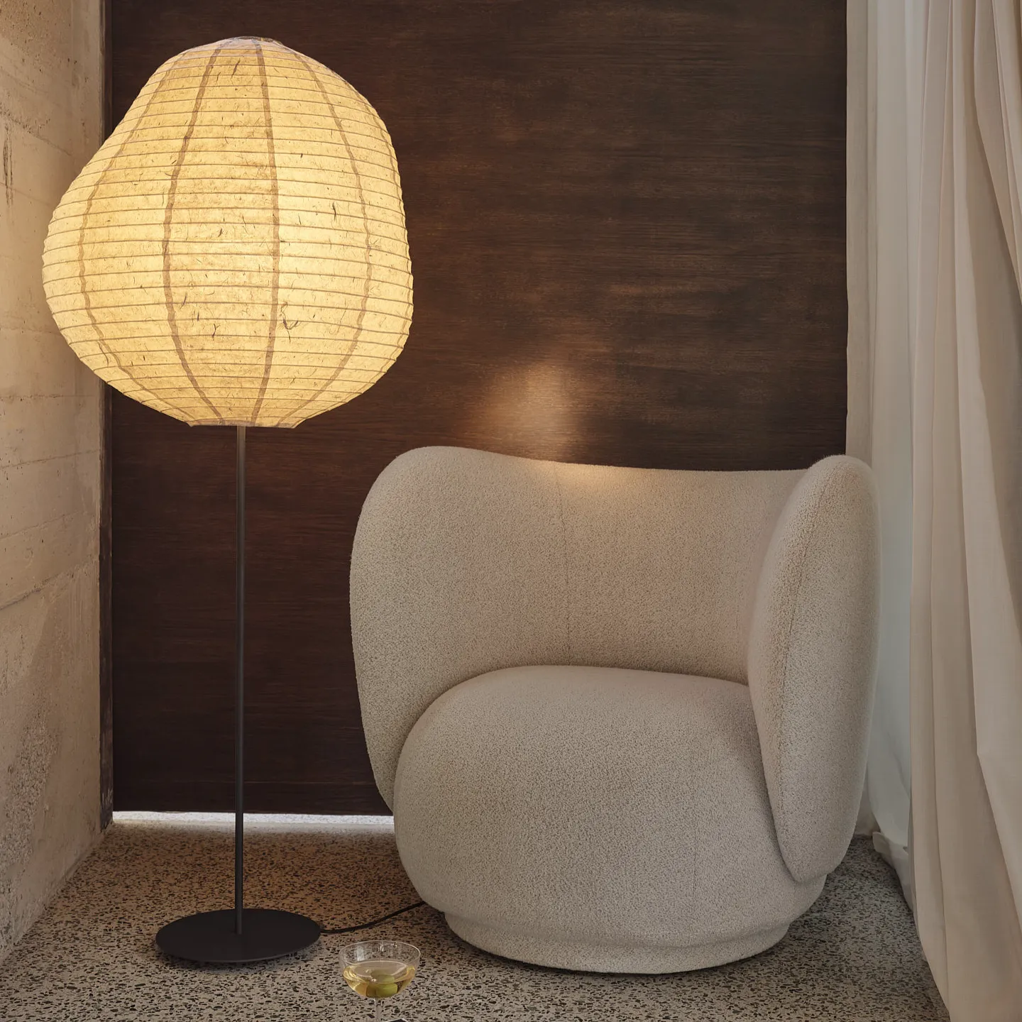 De Kurbis Vloerlamp is met precisie vervaardigd van delicaat Washi papier en gecombineerd met een solide, zwarte metalen voet met poedercoating en een elegant verlengde steel. De lamp geeft een nieuwe definitie aan traditioneel verlichtingsdesign. Het organische en asymmetrische silhouet straalt een zacht, vriendelijk licht uit en creëert een warme en uitnodigende sfeer. Het opvallende ontwerp van de Kurbis Vloerlamp, perfect om een leeshoekje of favoriete stoel om te toveren tot een rustig toevluchtsoord, combineert esthetische aantrekkingskracht naadloos met functionele elegantie.