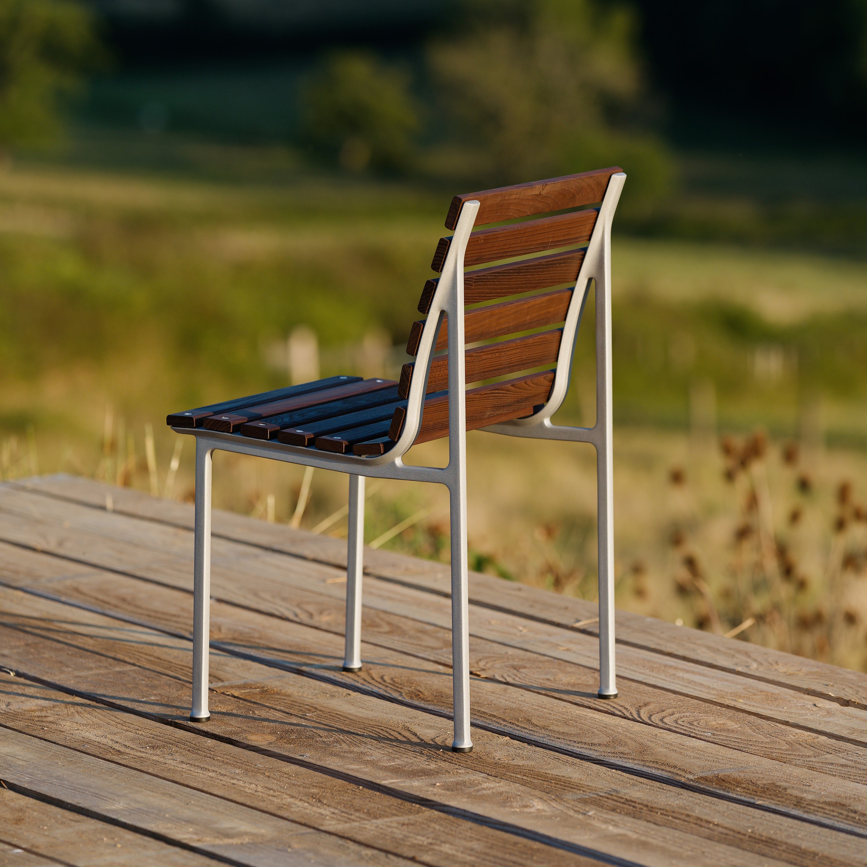- In een warme houttint die natuurlijk blendt met de omgeving