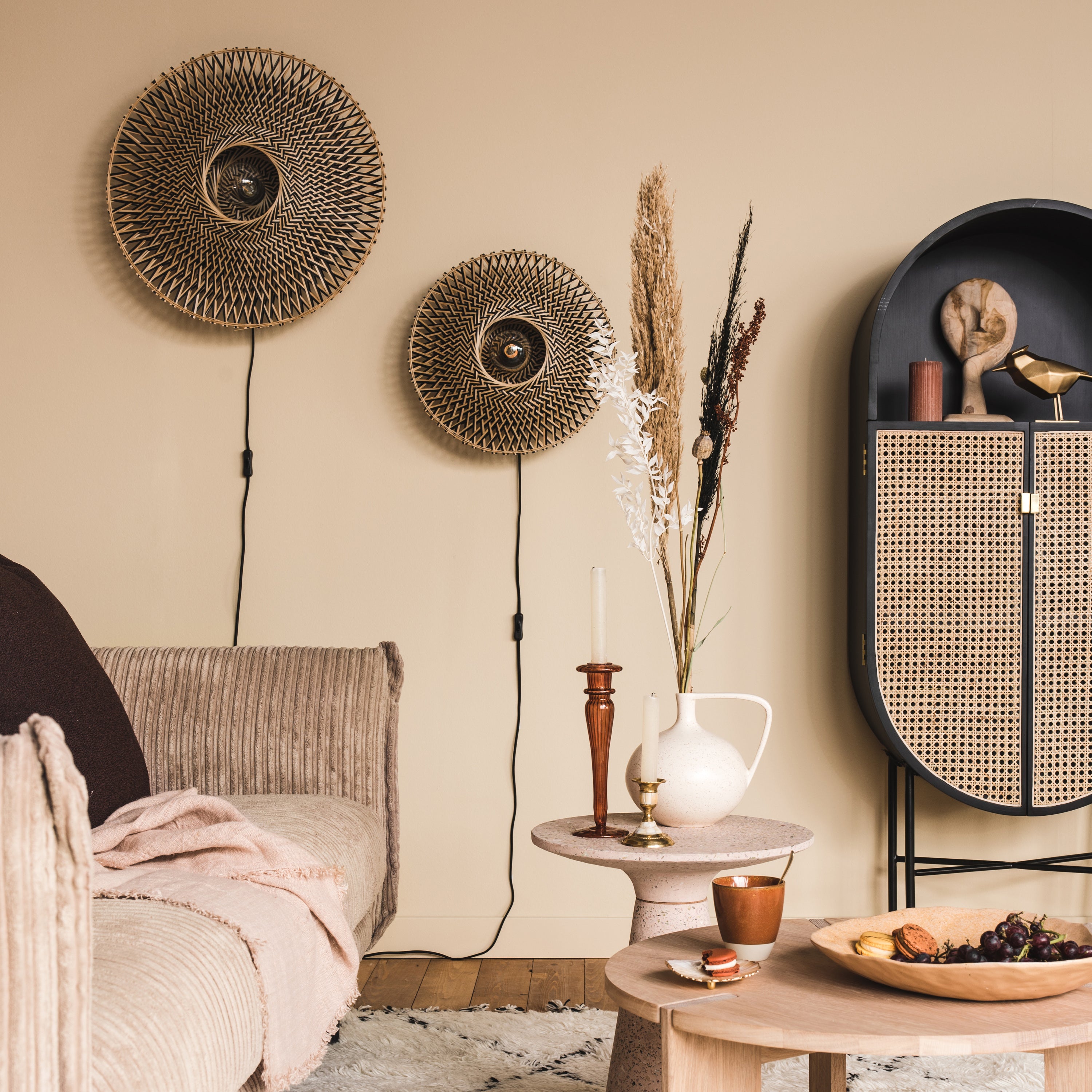 - Een warme combinatie van riet en mangohout