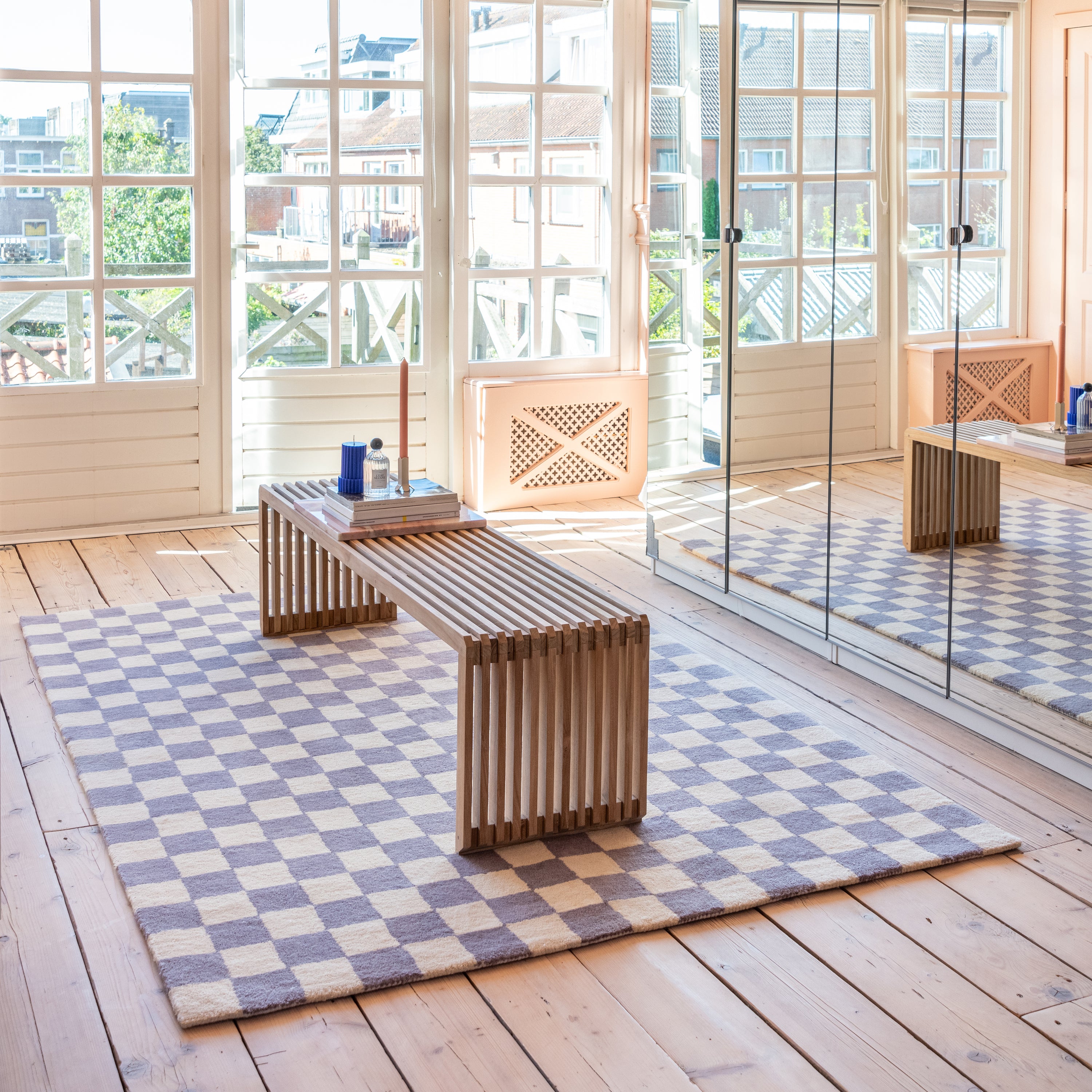 - Het lattenpatroon zorgt voor een luchtig, ritmisch en speels effect