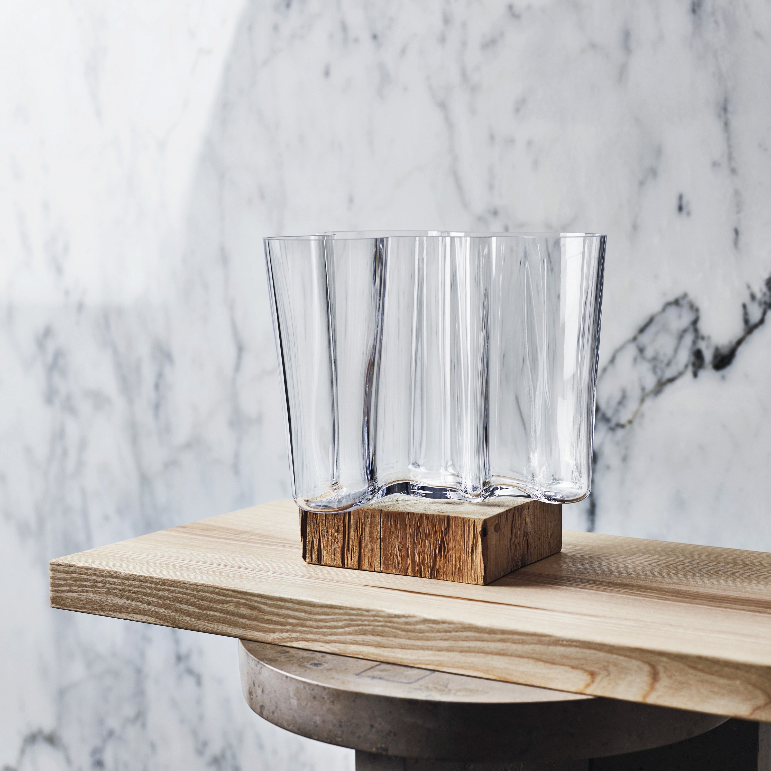 Historie De vaas is geïnspireerd op de Aalto vaas uit uit 1936. Deze vaas is ontworpen door één van de grote meesters van de moderne architectuur en Scandinavisch design: Alvar Aalto. Hij haalde zijn inspiratie uit de grillige vormgeving van de vele meren in Finland. De vaas werd in 1937 voor het eerst aan het publiek getoond tijdens de wereldtentoonstelling in Parijs, waar hij zorgde voor vernieuwing en innovatie door zijn eenvoud en natuurlijke vormgeving.
