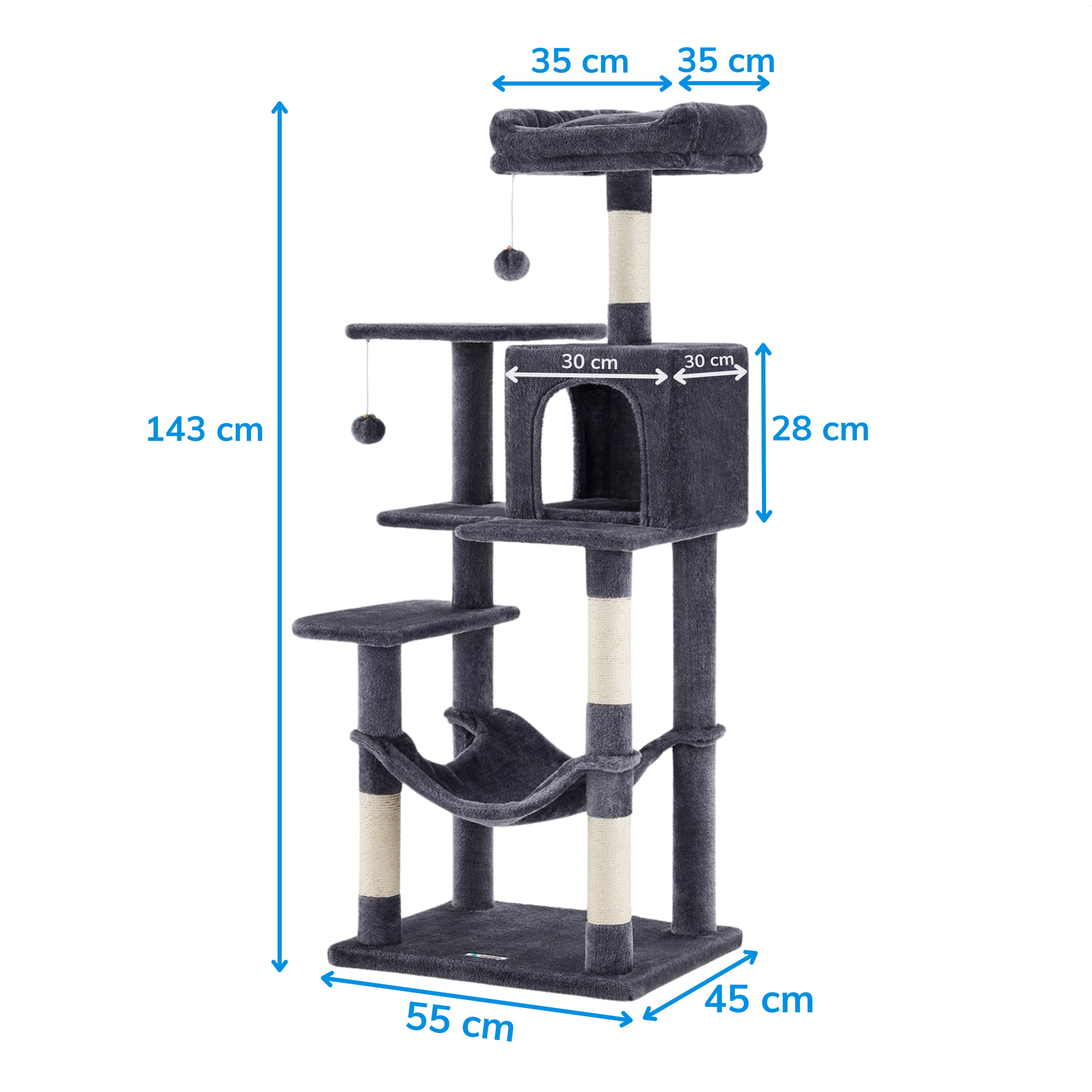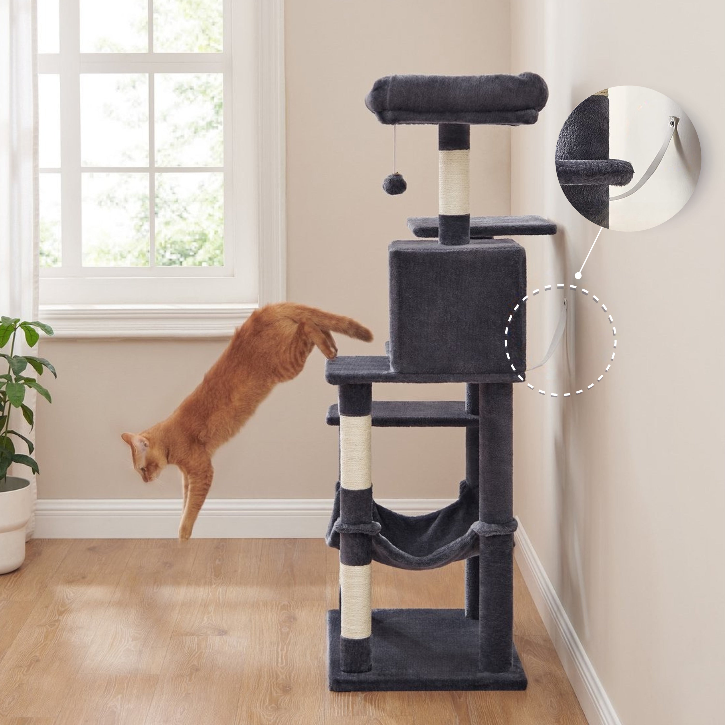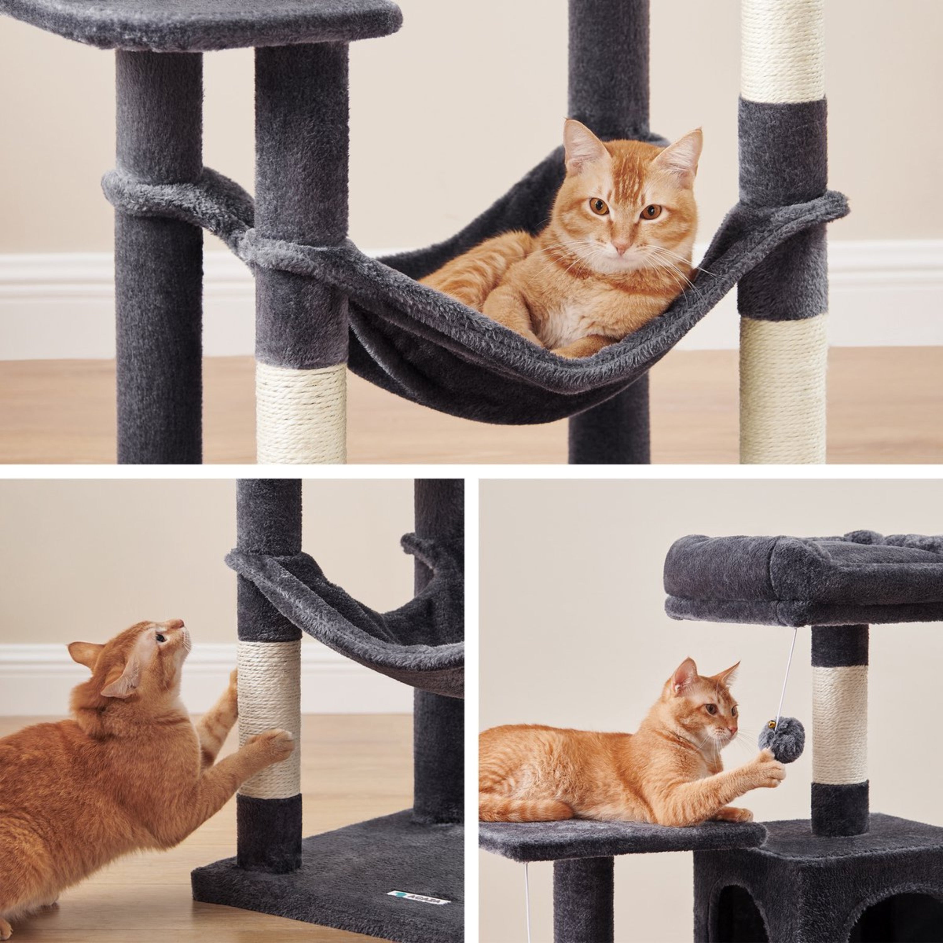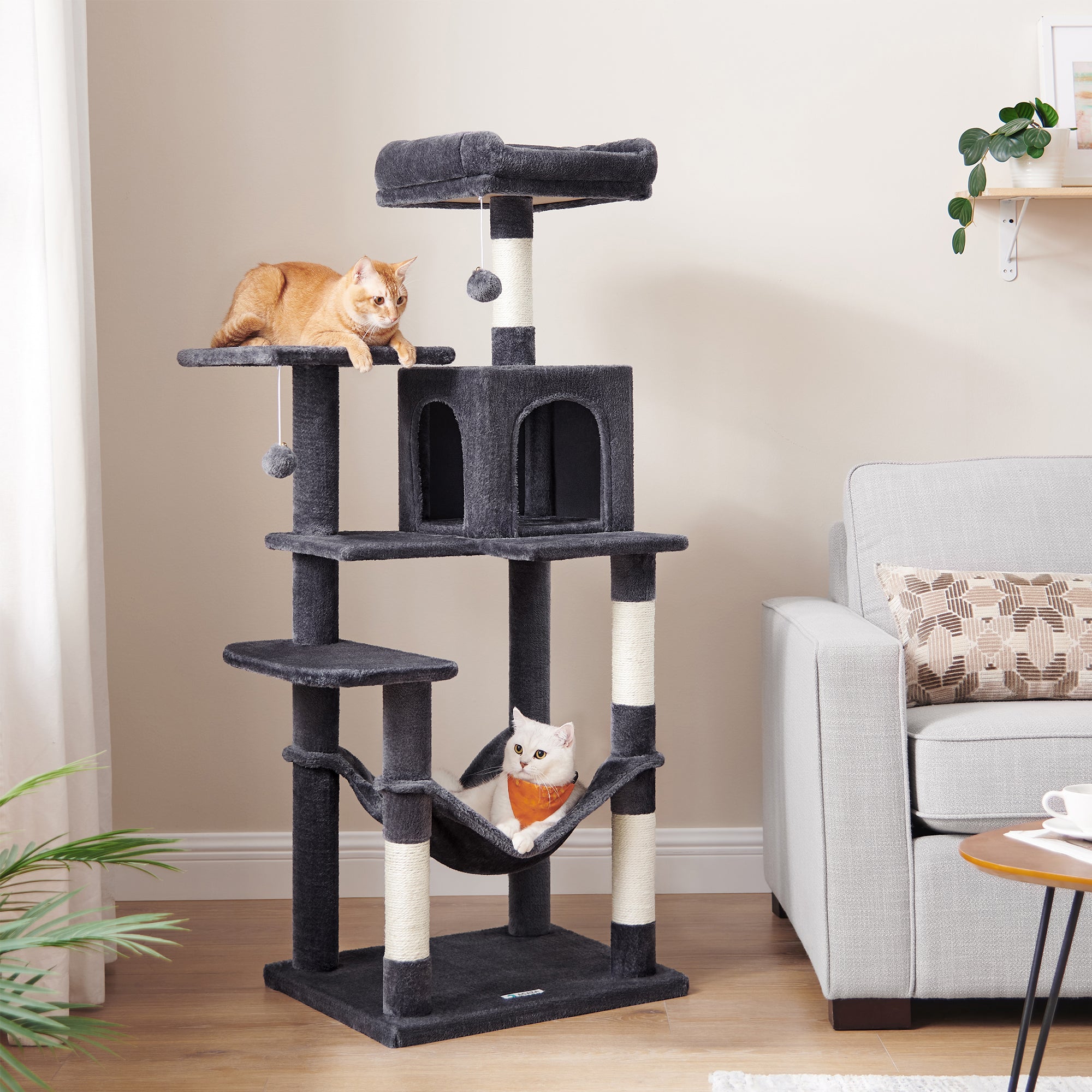 Krabpaal met Hangmat voor meerdere Katten - Kattenboom - Rookgrijs
