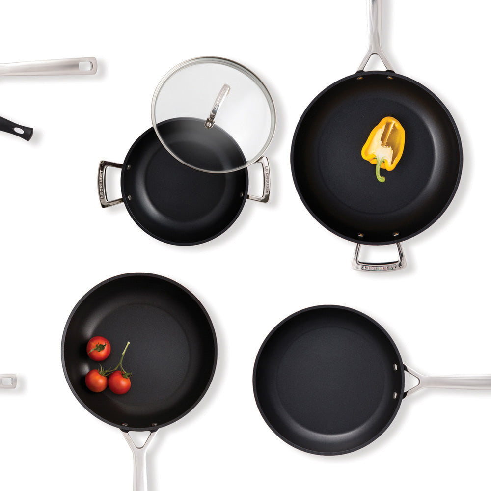 Doe maar duurzaam De koekenpannen uit de Les Forgées serie van Le Creuset zijn gemaakt van gesmeed aluminium. Ze hebben een geanodiseerde buiten- en binnenkant waardoor de pannen een extra sterke structuur hebben en zeer duurzaam zijn. De pannen zijn voorzien van een zeer sterke antiaanbaklaag die voldoet aan de strengste voedsel- en productvoorschriften. De antiaanbaklaag is zelfs veilig wanneer er per ongeluk in gekrast is.