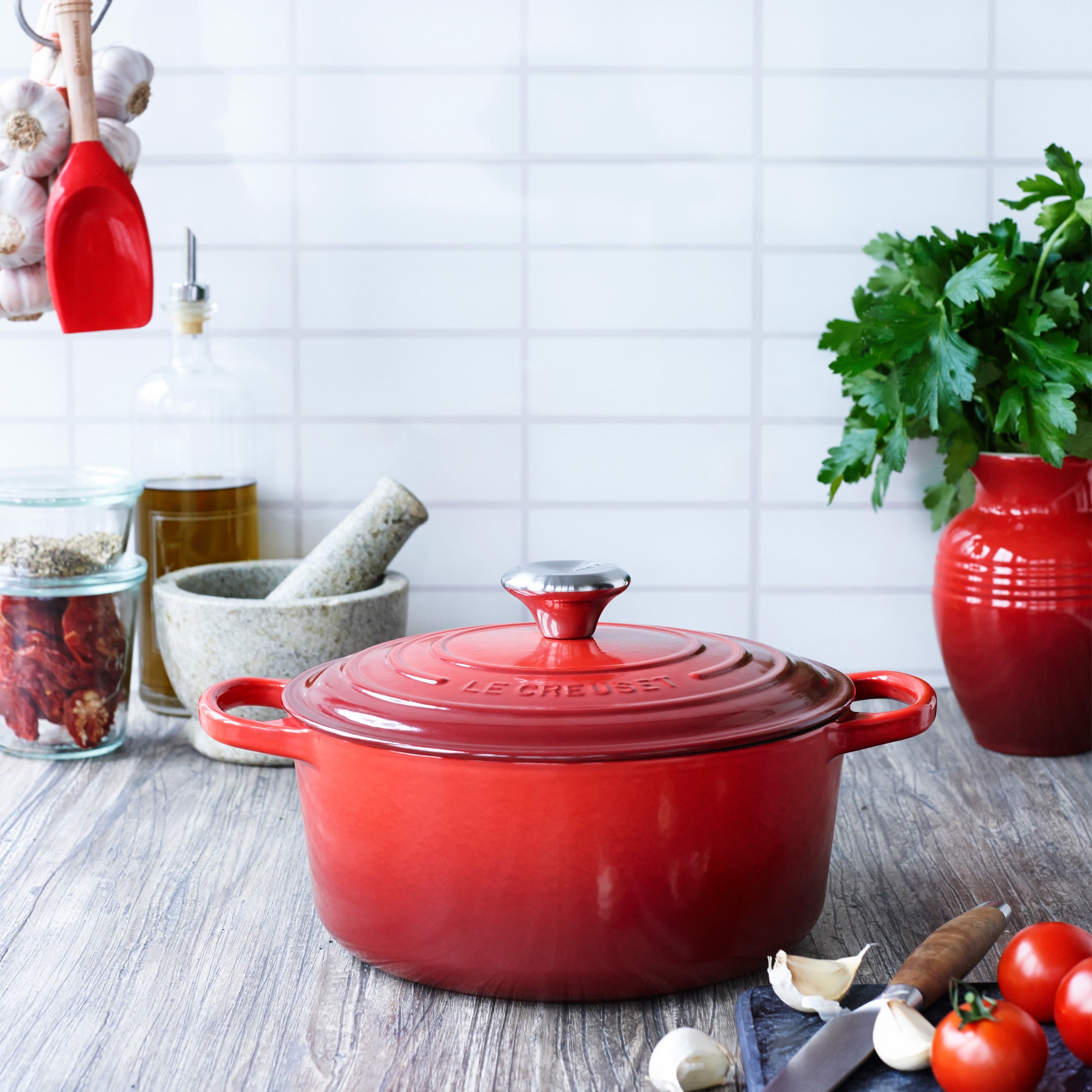 Bij Le Creuset staan functionaliteit en kwaliteit hoog in het vaandel. Le Creuset vervaardigt sinds 1925 innovatieve en traditionele producten op het gebied van gietijzeren kookgerei. Alle producten van Le Creuset zijn uniek aangezien ze per stuk uit een eenmalige mal van zand komen. Ze worden vervolgens handmatig uit de vorm geheven, afgebraamd en geslepen. Zo heb je altijd een uniek product! Het geëmailleerde gietijzer van Le Creuset is 100% herbruikbaar en is één van de meest geschikte materialen voor kookgerei en zal dan ook jarenlang mee gaan. Door te koken met gietijzeren pannen wordt er minder energie verbruikt omdat de warmte langer wordt vastgehouden. Ook wordt de warmte gelijkmatig verdeeld, waardoor voedingsstoffen beter bewaard blijven.