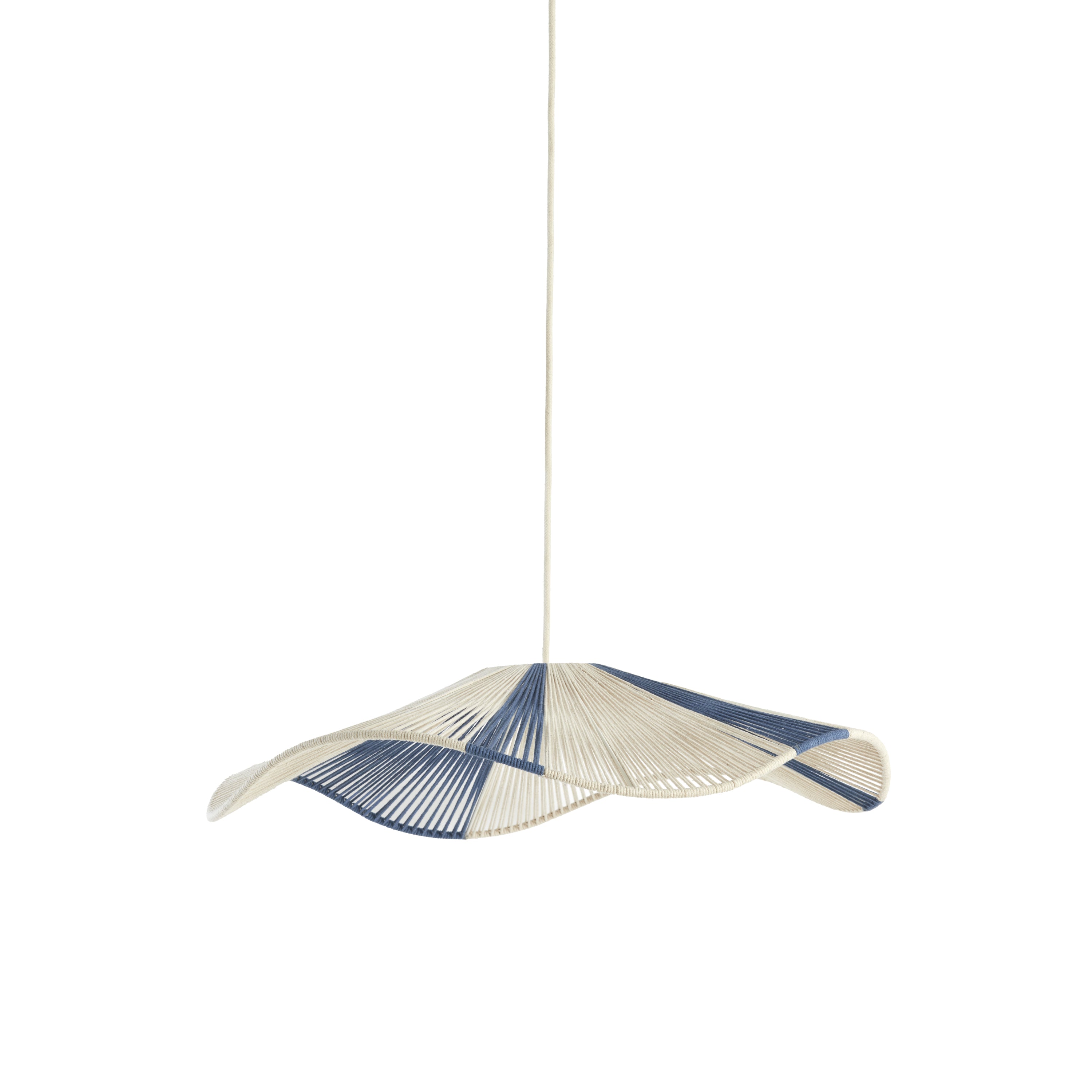 De RAFA hanglamp combineert op harmonieuze wijze de kleuren crème en blauw, wat een verfrissende en moderne uitstraling creëert. Dit speelse ontwerp past perfect in zowel minimalistische als meer uitgesproken interieurstijlen, en vormt een echte blikvanger in elke ruimte.