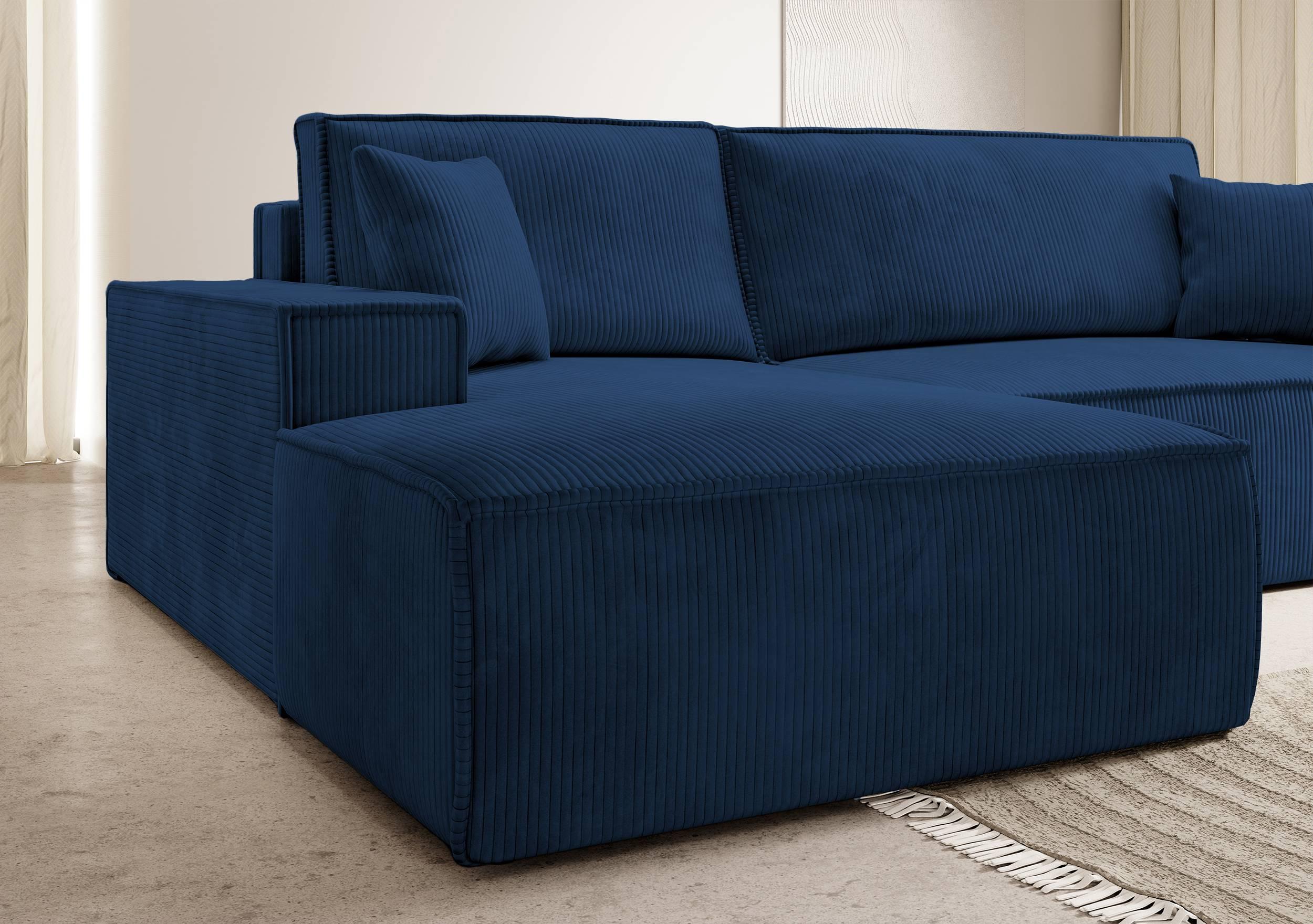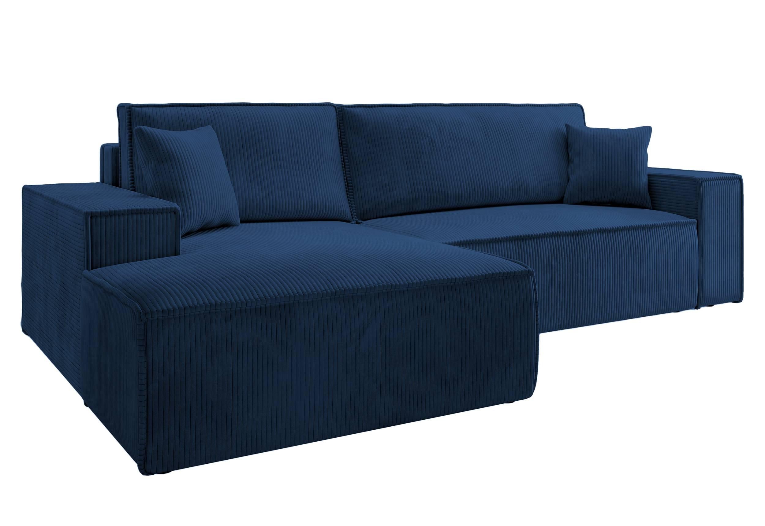 NADUVI Collection Galine Hoekbank met Chaise Longue Links met Slaapfunctie - Ribstof - Donkerblauw