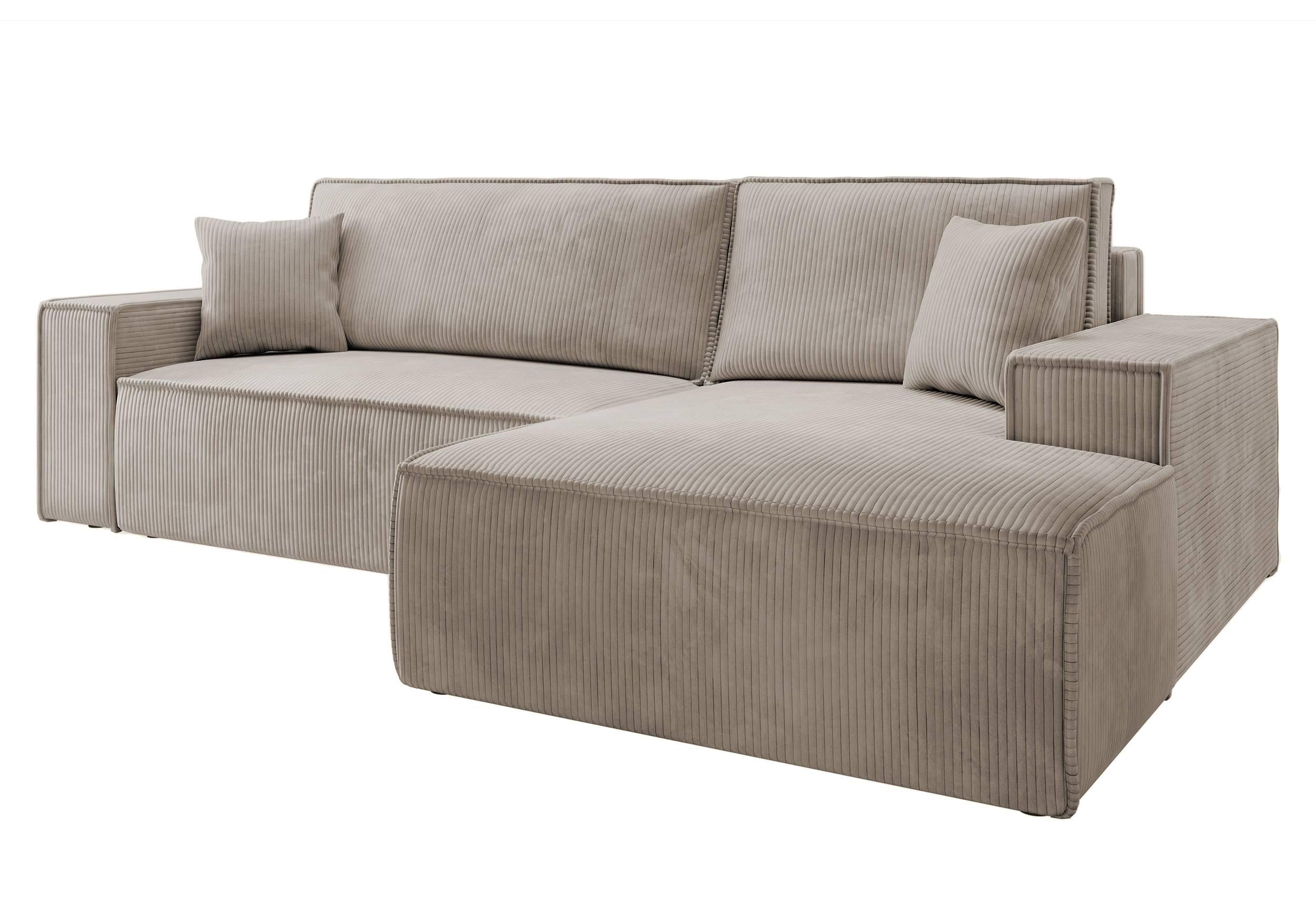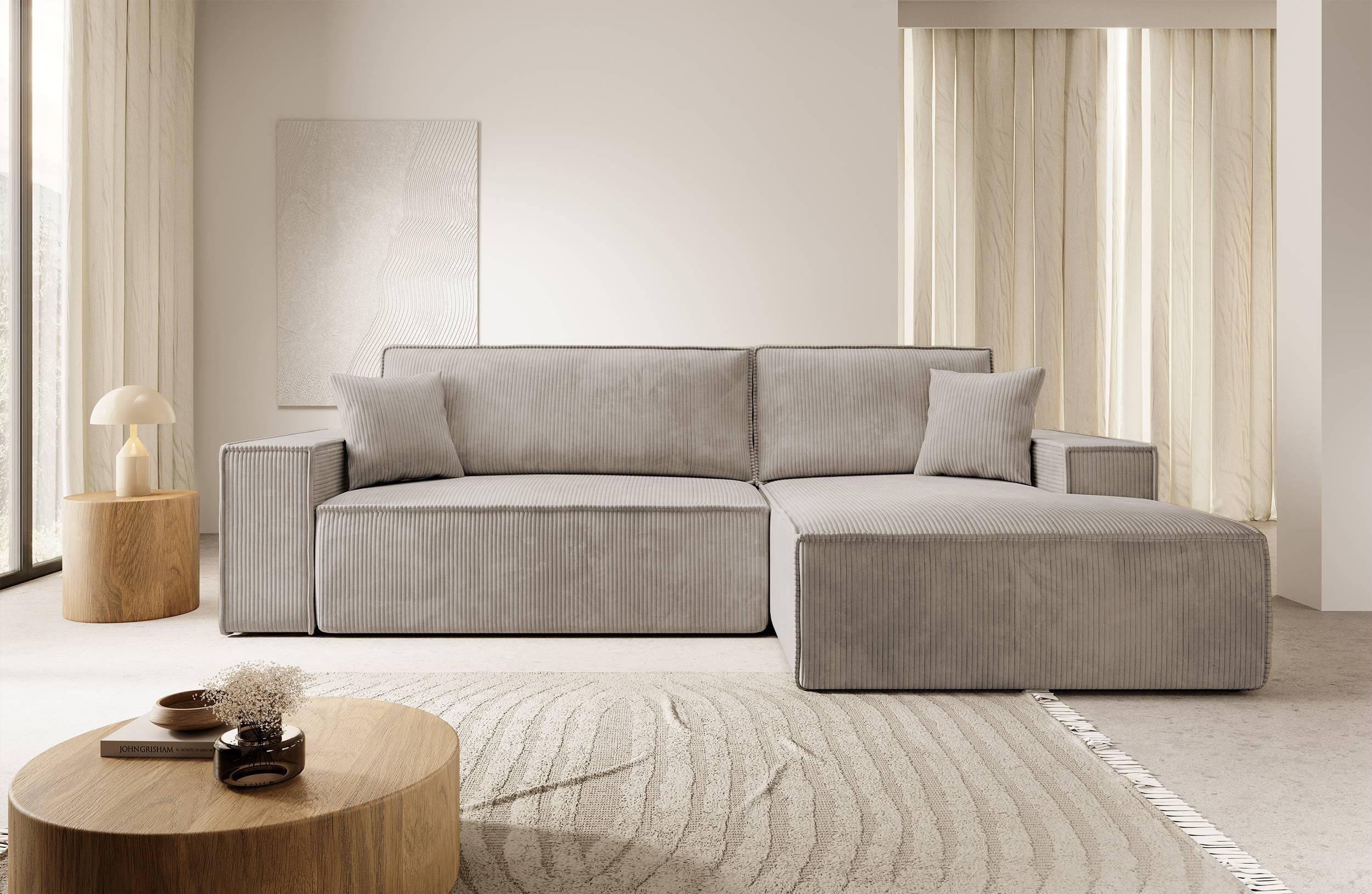 NADUVI Collection Galine Hoekbank met Chaise Longue Rechts met Slaapfunctie - Ribstof - Beige