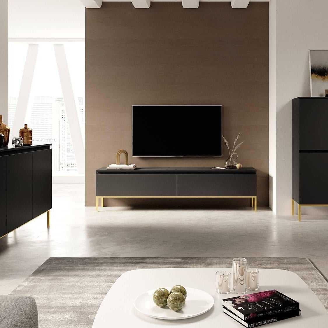 NADUVI Collection Kate Tv-Meubel - B 150 cm - Zwart / Goud