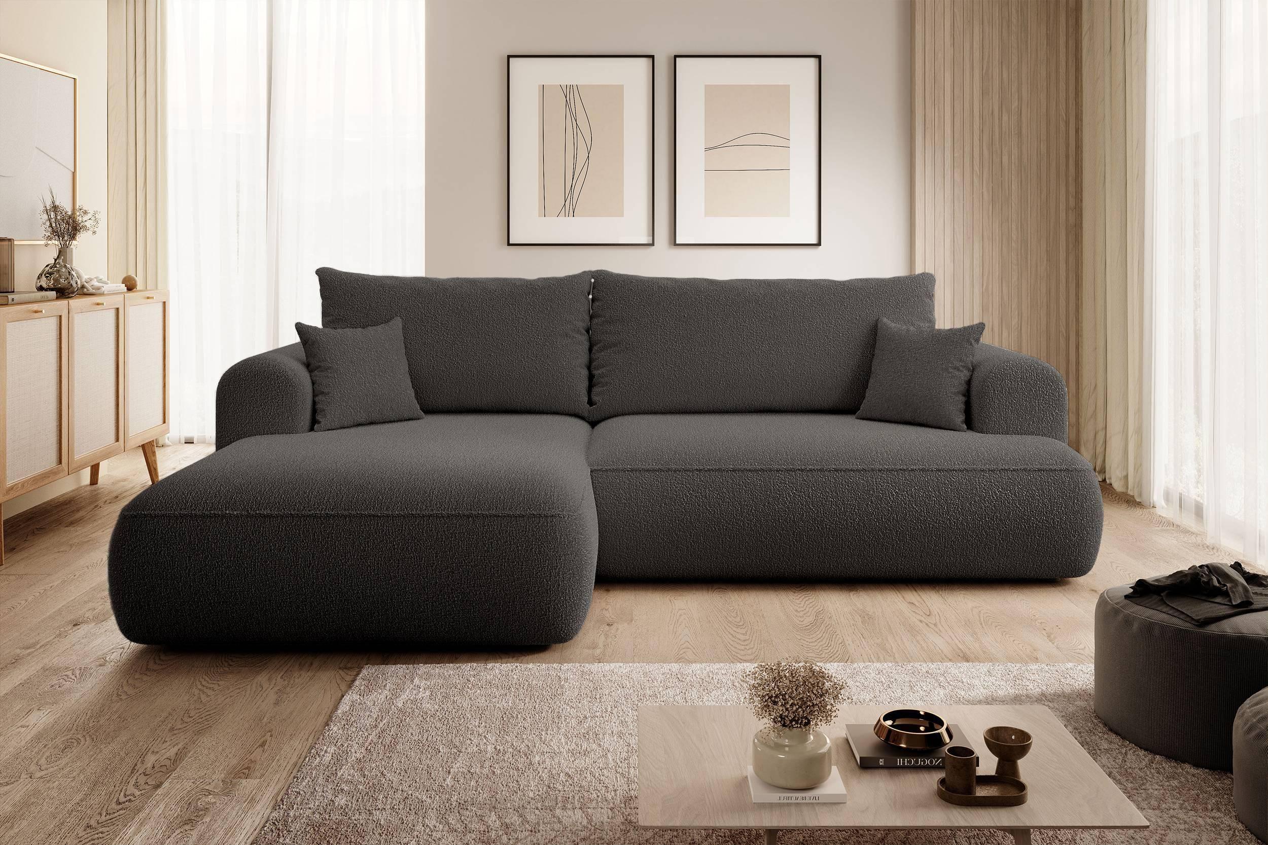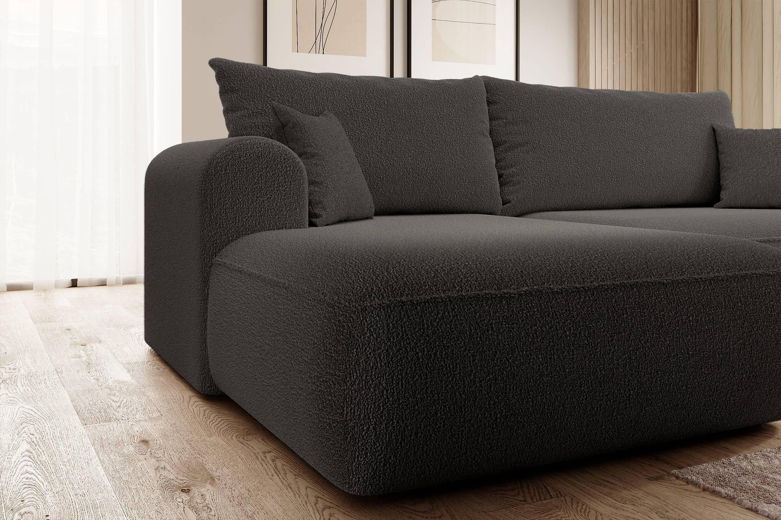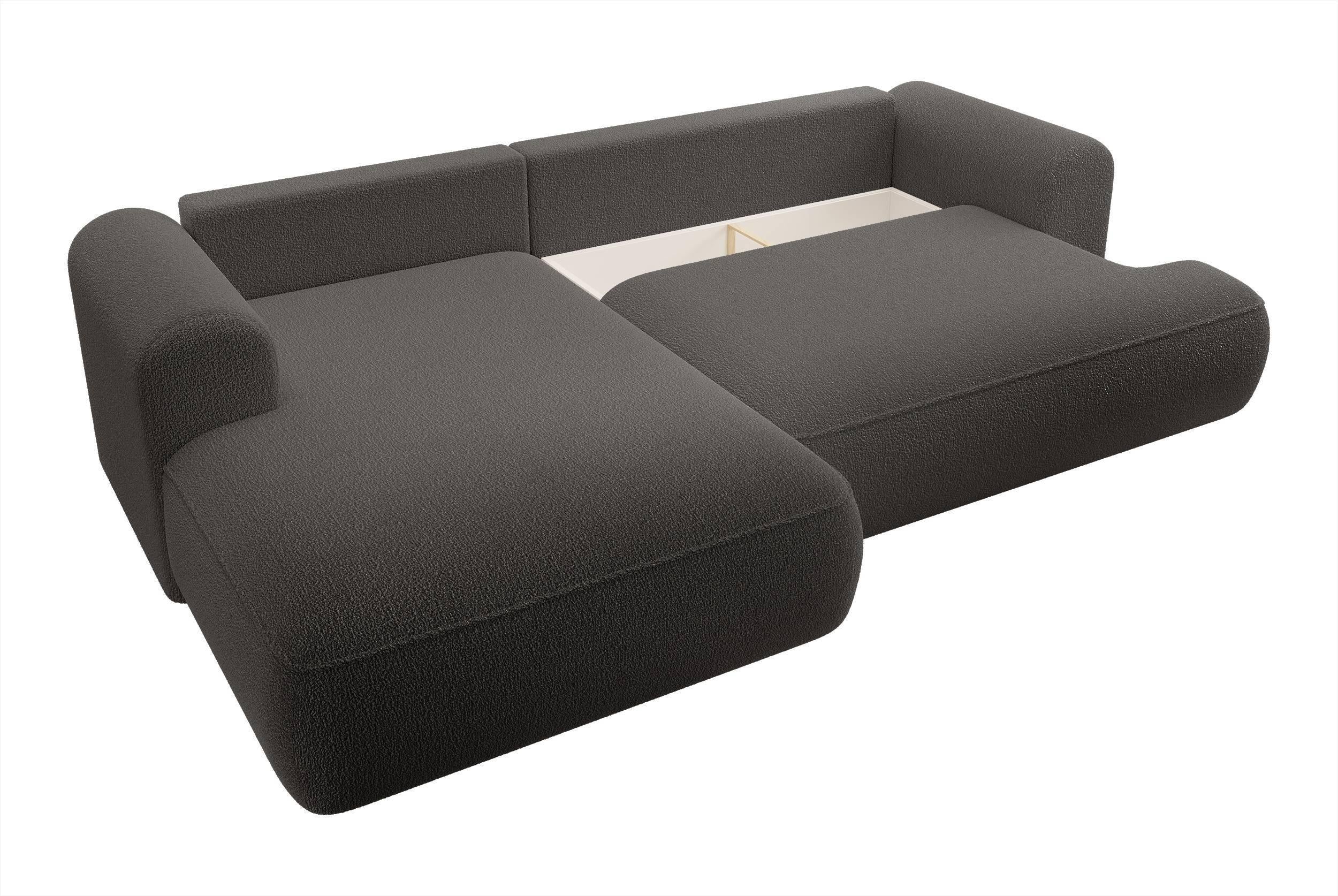 NADUVI Collection Philipa Hoekbank Links met Slaapfunctie - Bouclé - Antraciet