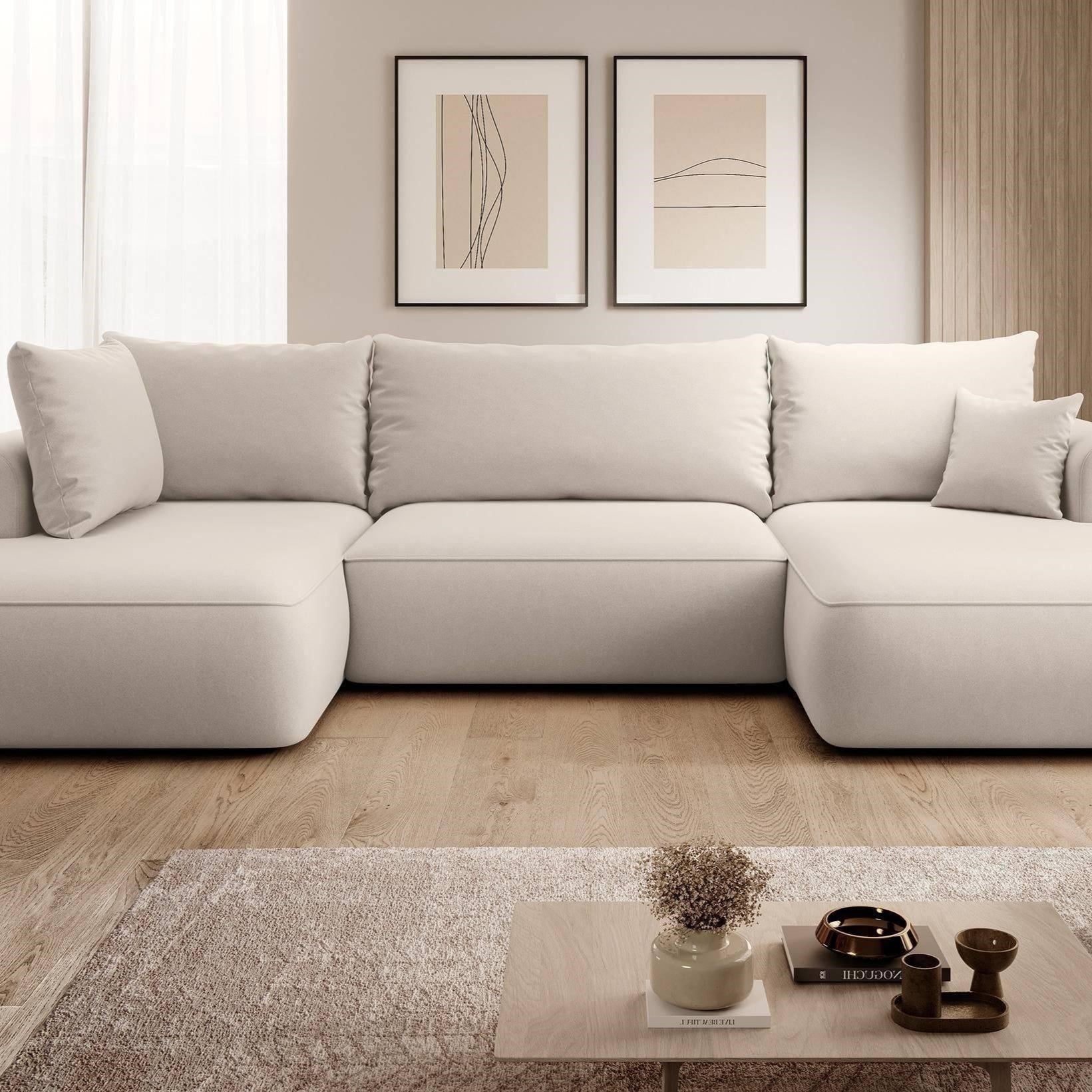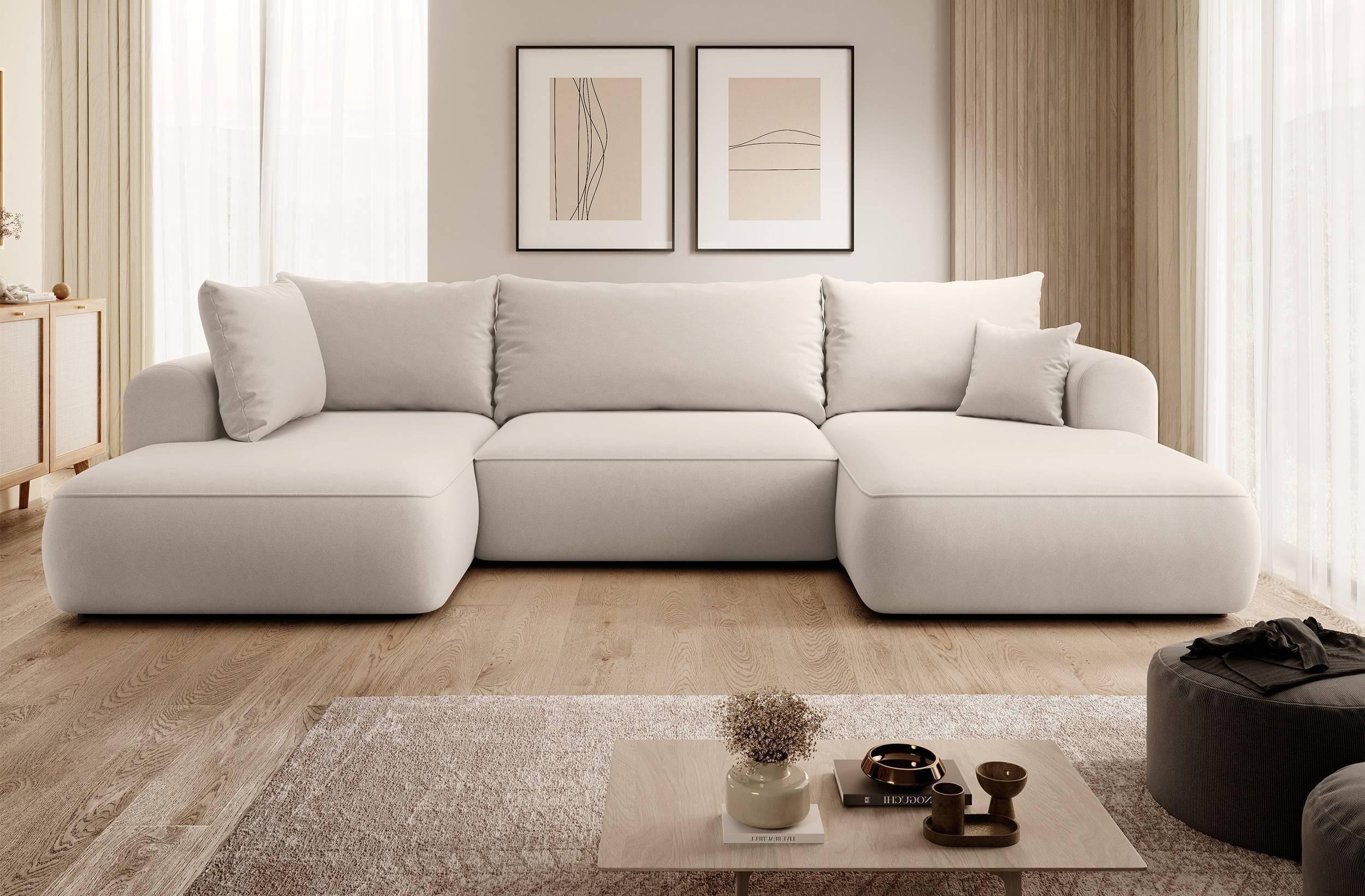 NADUVI Collection Philipa U-bank Links met Slaapfunctie - Velvet - Crème