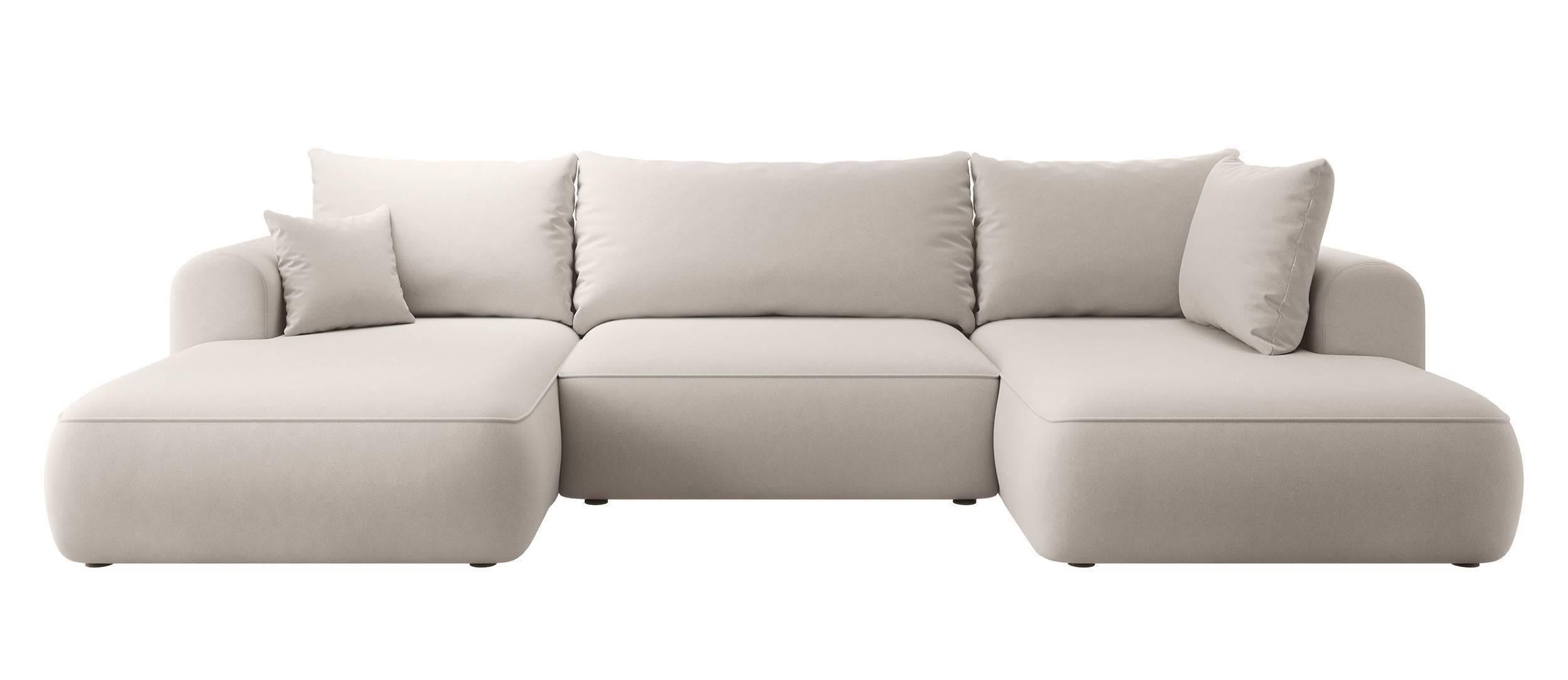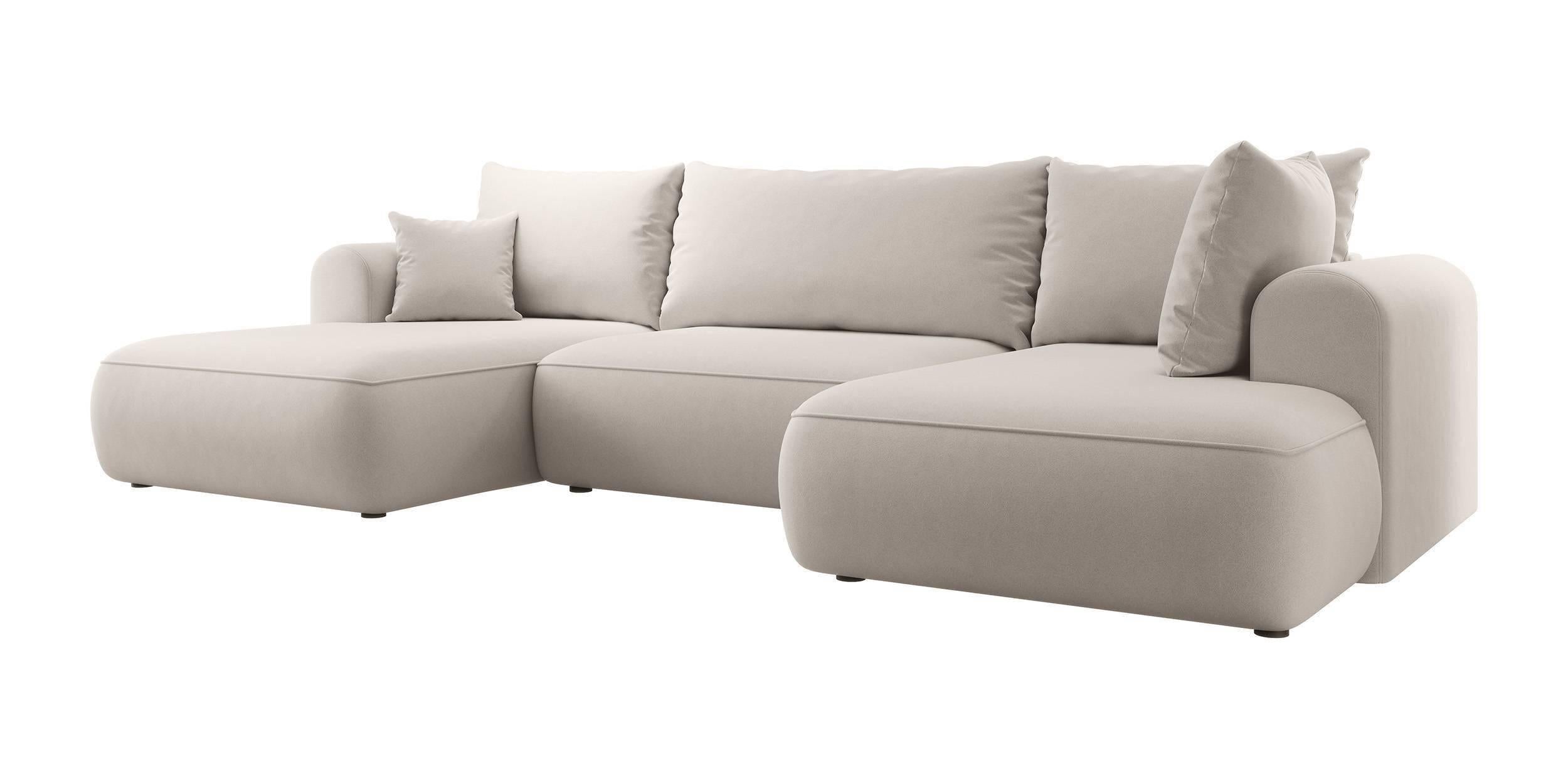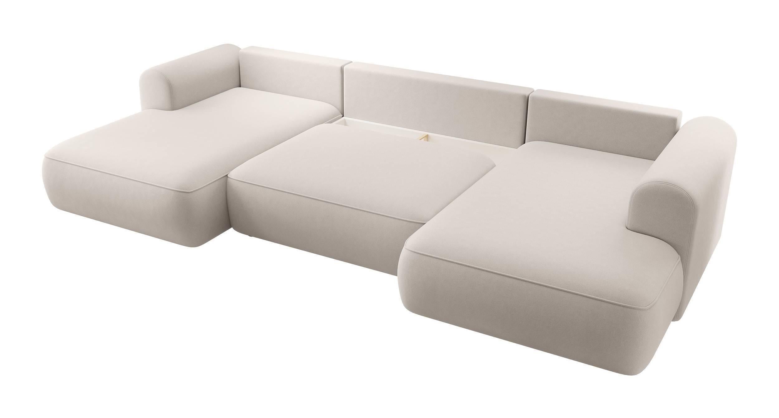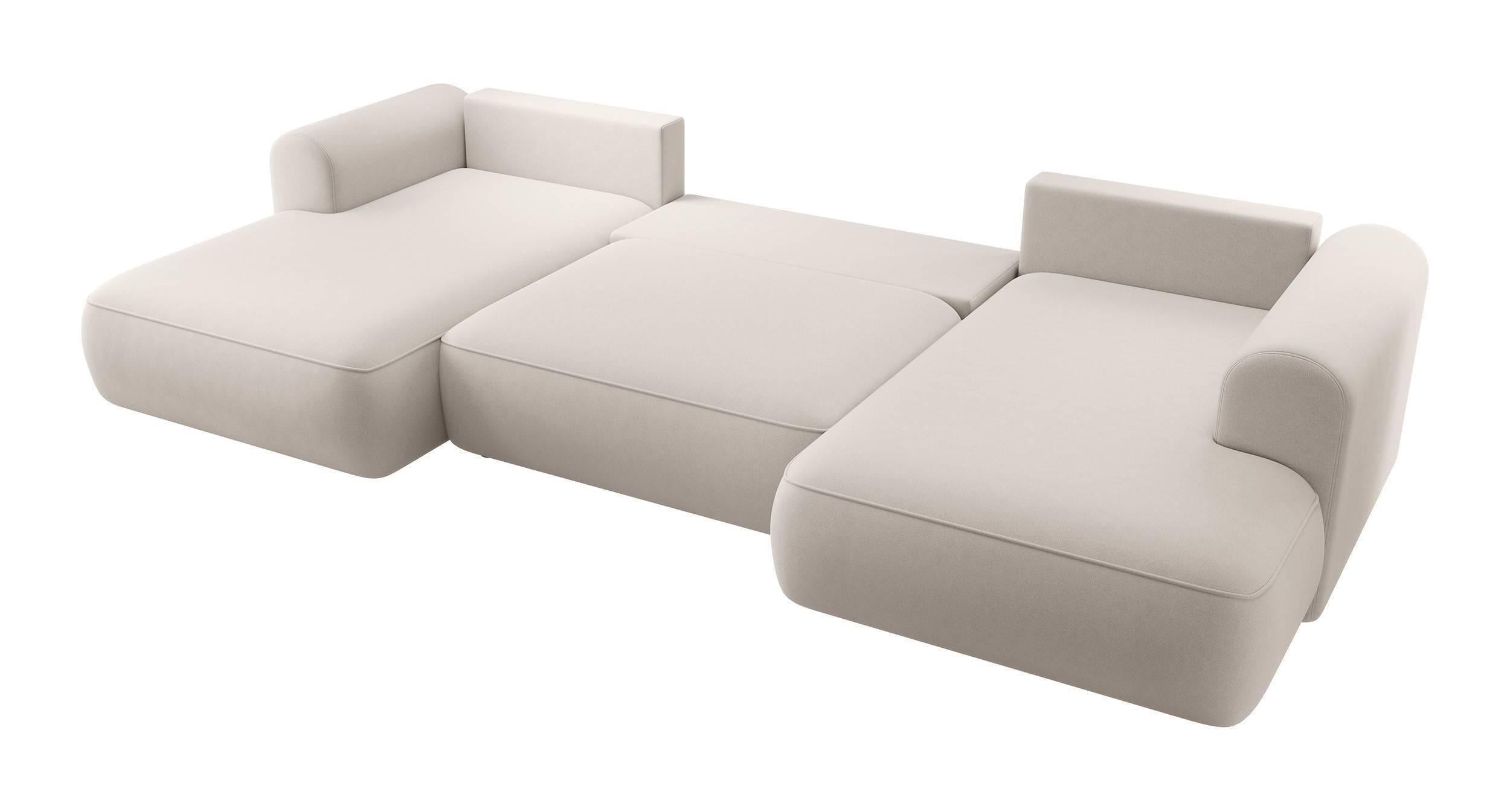 NADUVI Collection Philipa U-bank Rechts met Slaapfunctie - Velvet - Gebroken wit