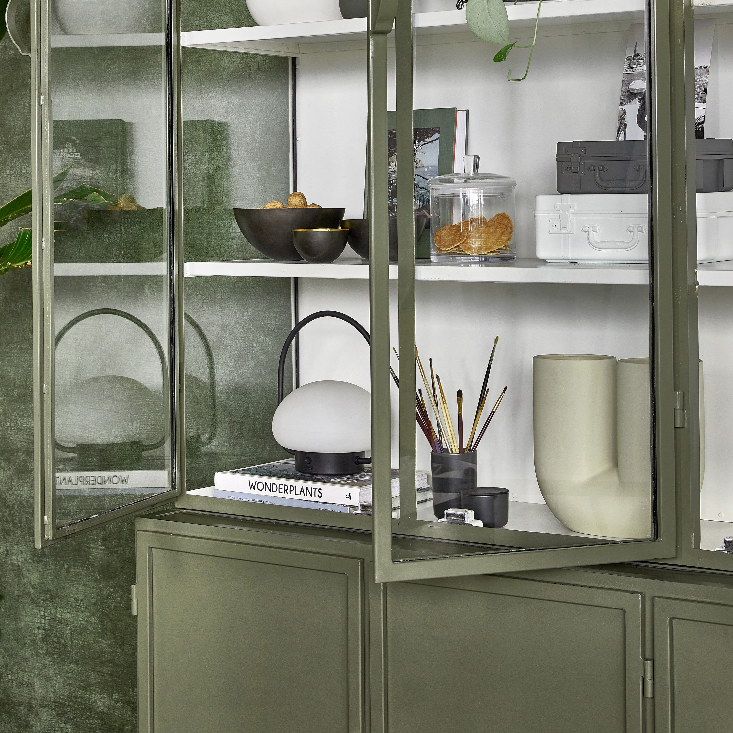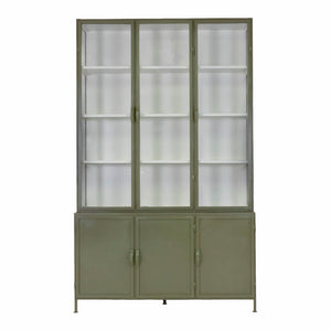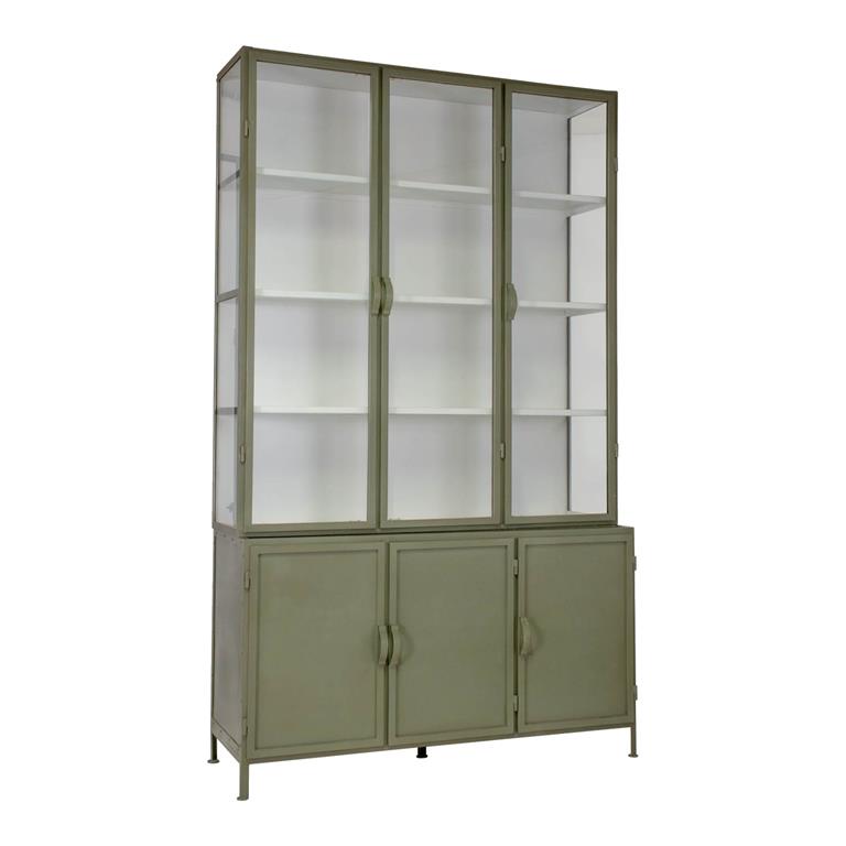 - Bovenste deuren zijn van glas met daarachter metalen planken