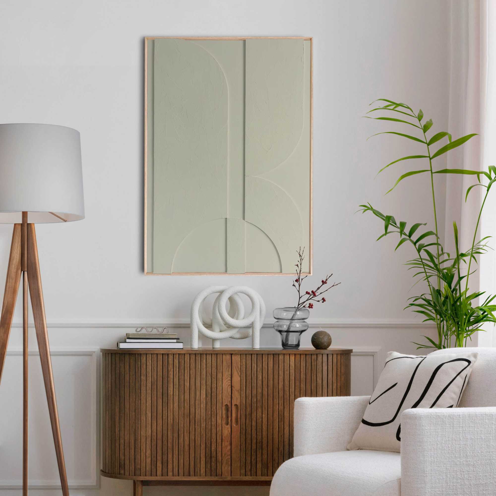 - Handgemaakt Scandinavisch minimalistisch schilderij met 3D-textuur