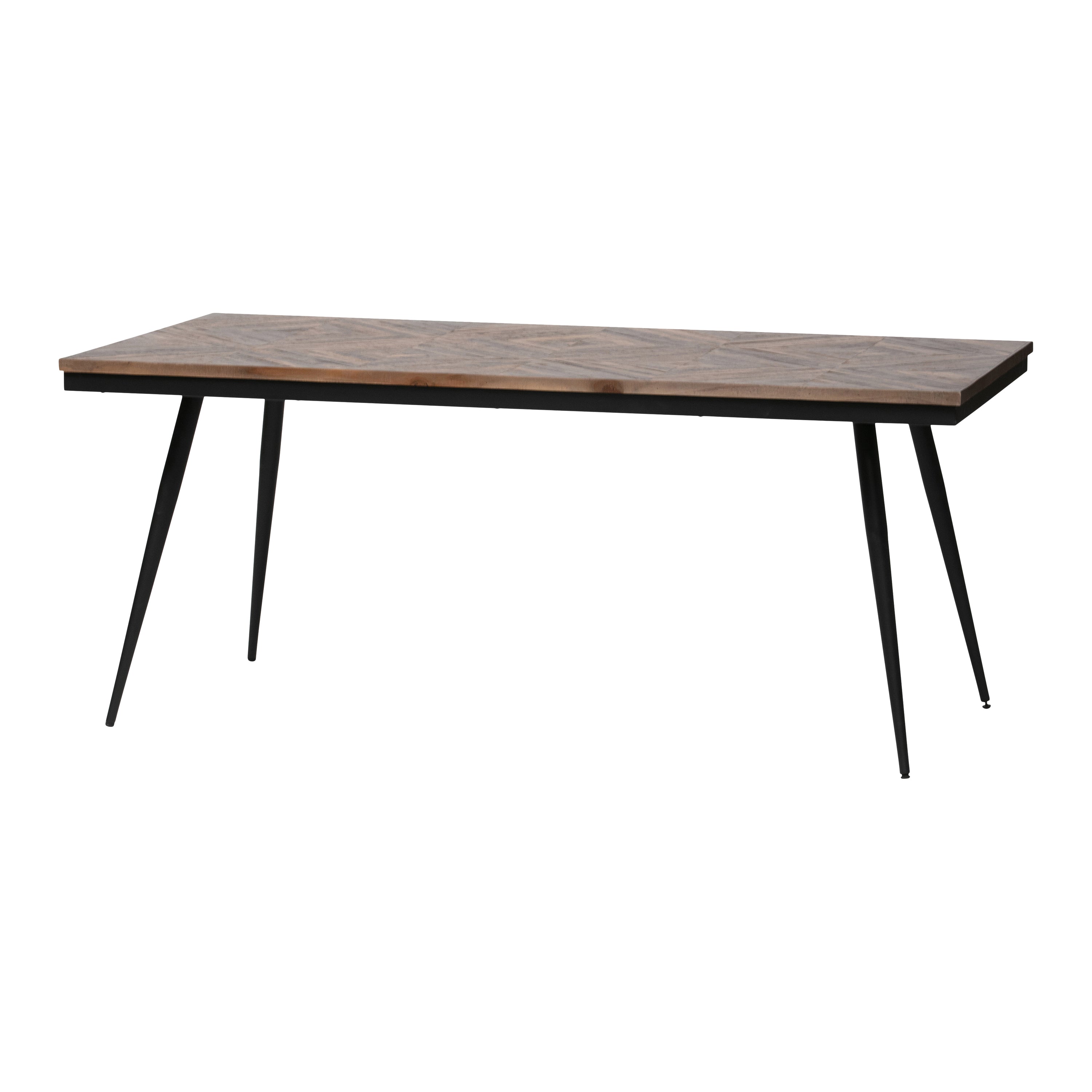 Het tafelblad heeft een dikte van 3 cm en is afgewerkt met 2 lagen sealer op waterbasis en 1 laag matte lak. De poten en het onderstel zijn gemaakt van ijzer met een zwarte afwerking. Het totaalgewicht van de Rhombic eettafel is 29,3 kg.
