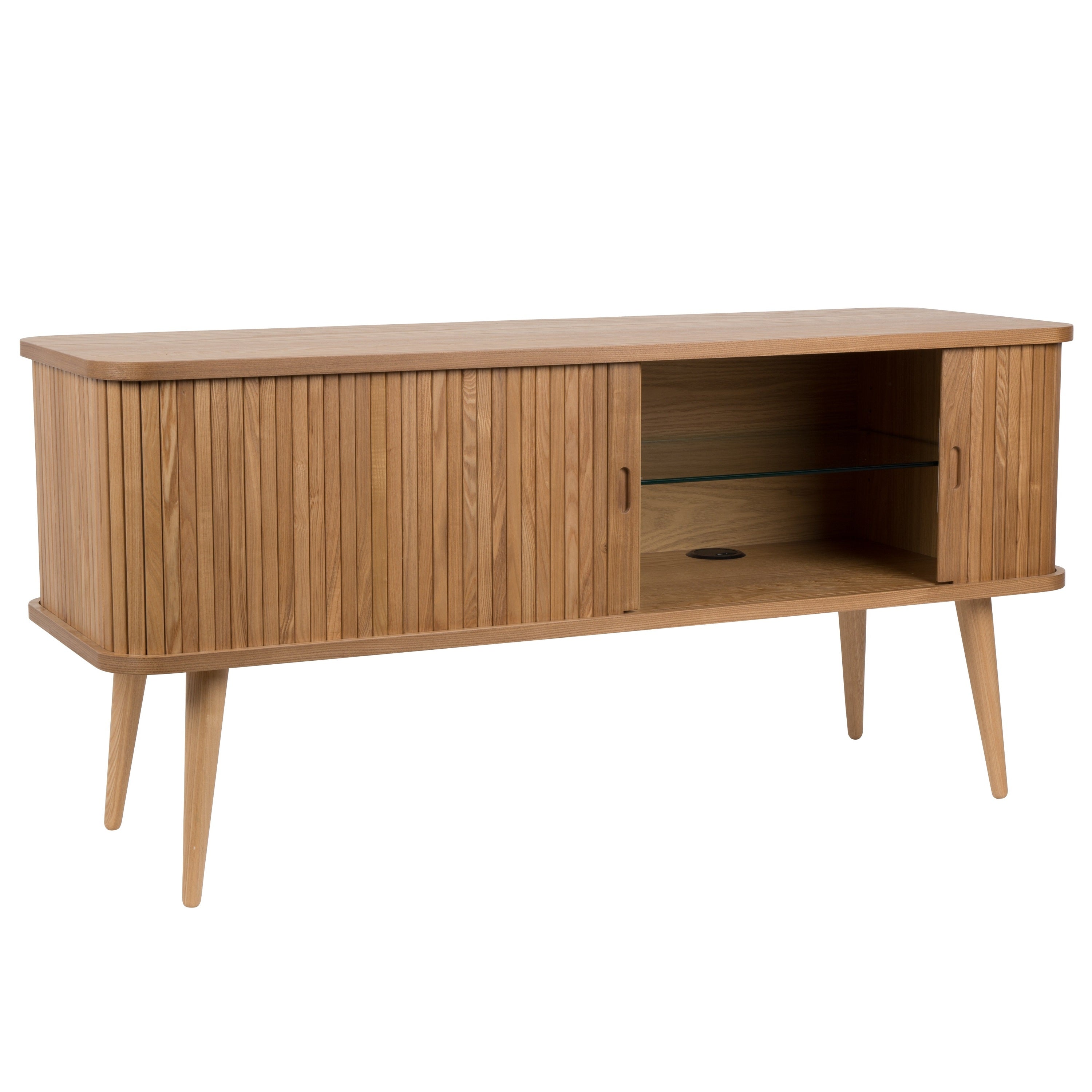 - Met 2 glazen planken en houten tussenschot