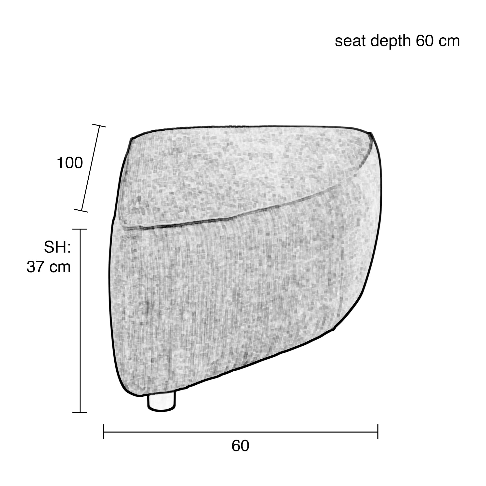 - Hoekelement rechts van: H 38 x B 60 x D 100 cm
